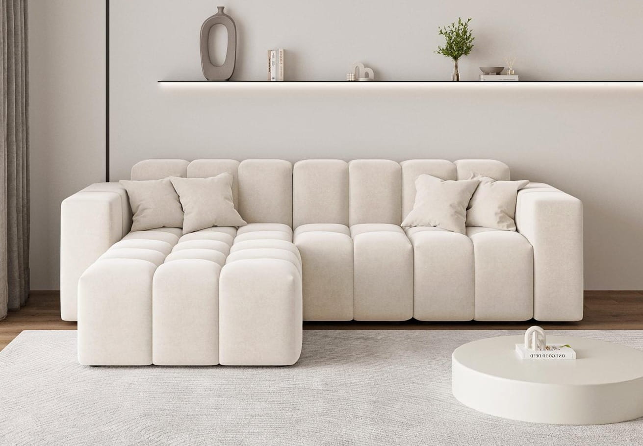Narożnik bubble tapicerowany tkaniną komodo OMBO KREMOWY