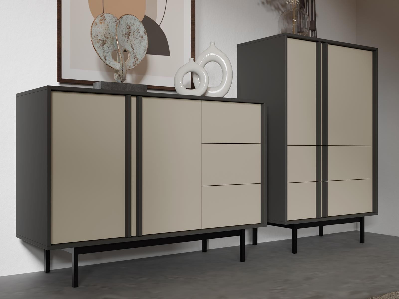 Beżowa komoda nowoczesna na wysokich nogach MALTS