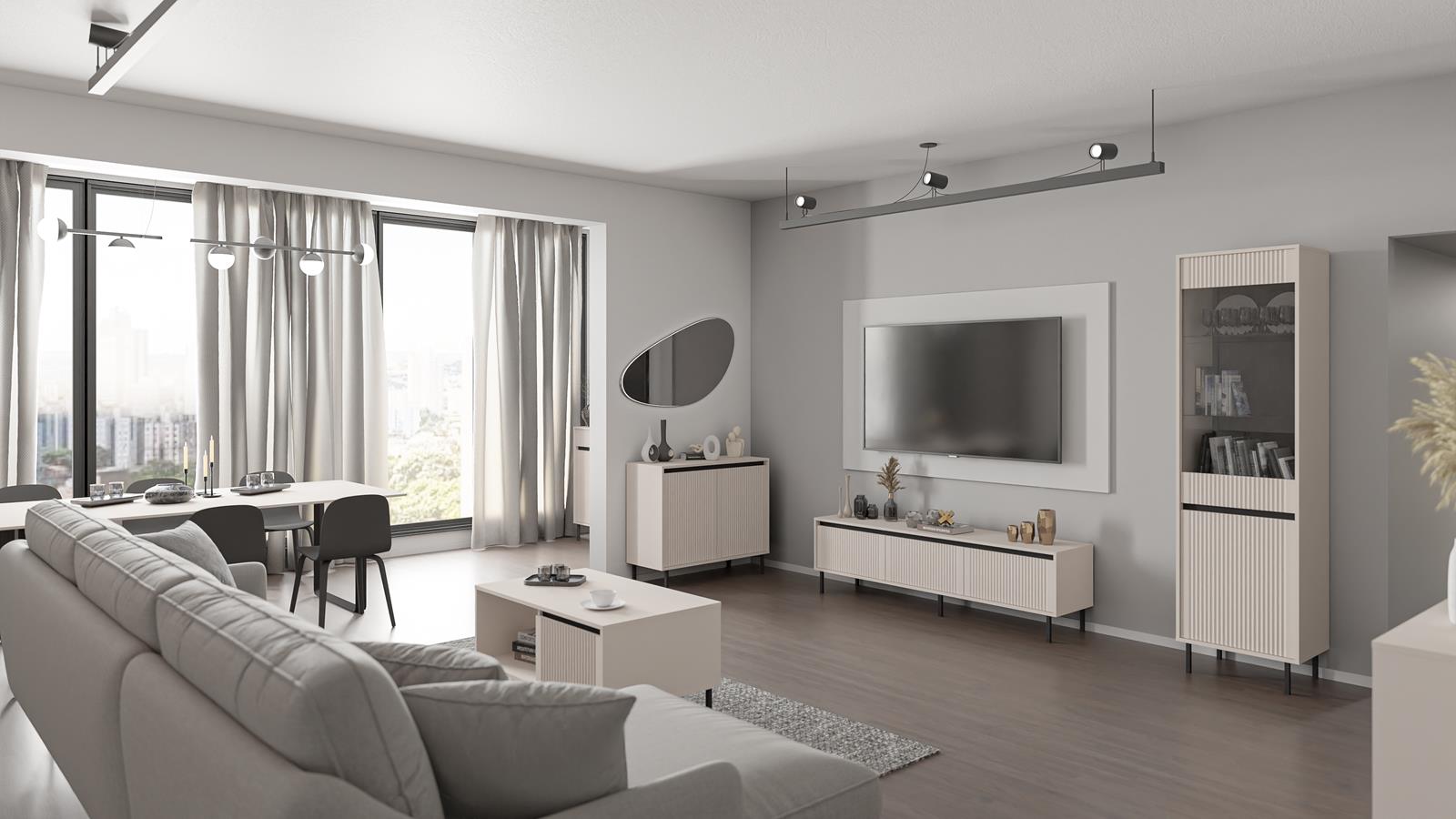 Beżowa komoda z ryflowanymi frontami to doskonały wybór dla osób, które cenią minimalistyczny design, funkcjonalność i nowoczesną elegancję. Wprowadza do wnętrza spójność, lekkość i przyjemnie uporządkowany charakter.
