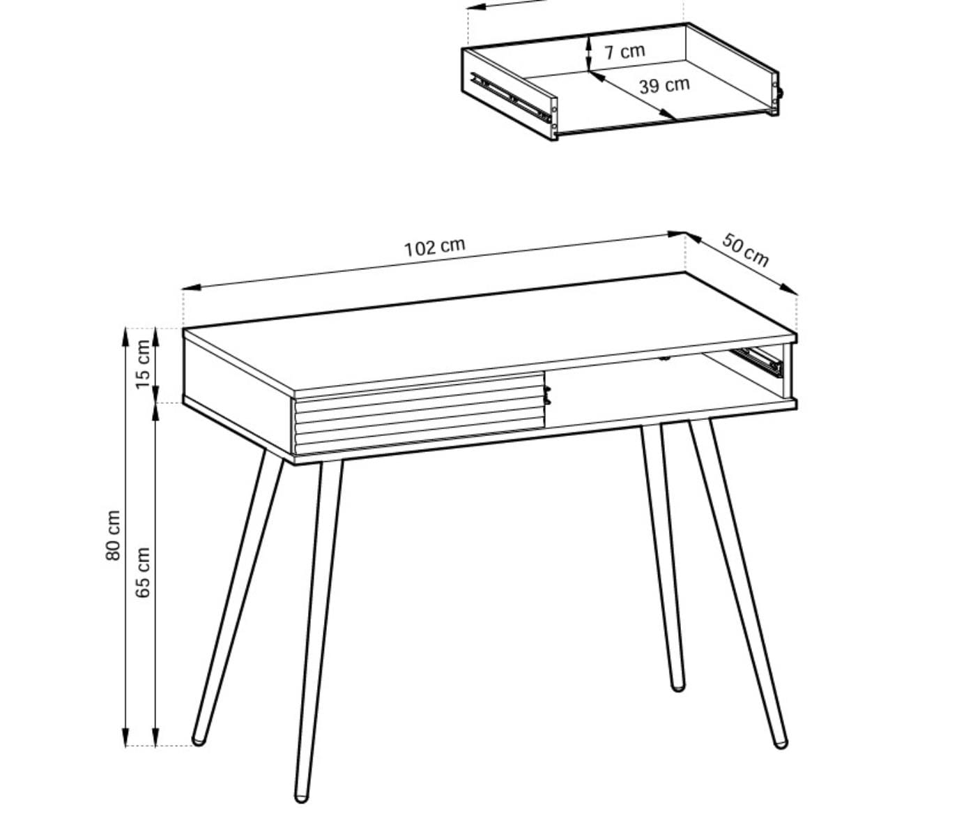 Wykonana z wysokiej jakości płyty laminowanej o grubości 16 mm, toaletka POLO zapewnia trwałość oraz odporność na zarysowania i uszkodzenia. Krawędzie wykończone obrzeżem ABS gwarantują estetyczny wygląd i dodatkową ochronę przed codziennym zużyciem. Dwie przestronne szuflady z dekoracyjnym ryflowaniem to idealne miejsce na kosmetyki, akcesoria i inne niezbędne drobiazgi.
