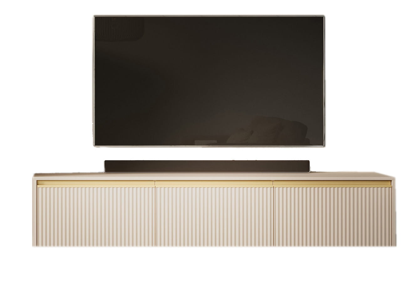 Beżowa szafka pod telewizor ryflowana złoty akcent GLAM