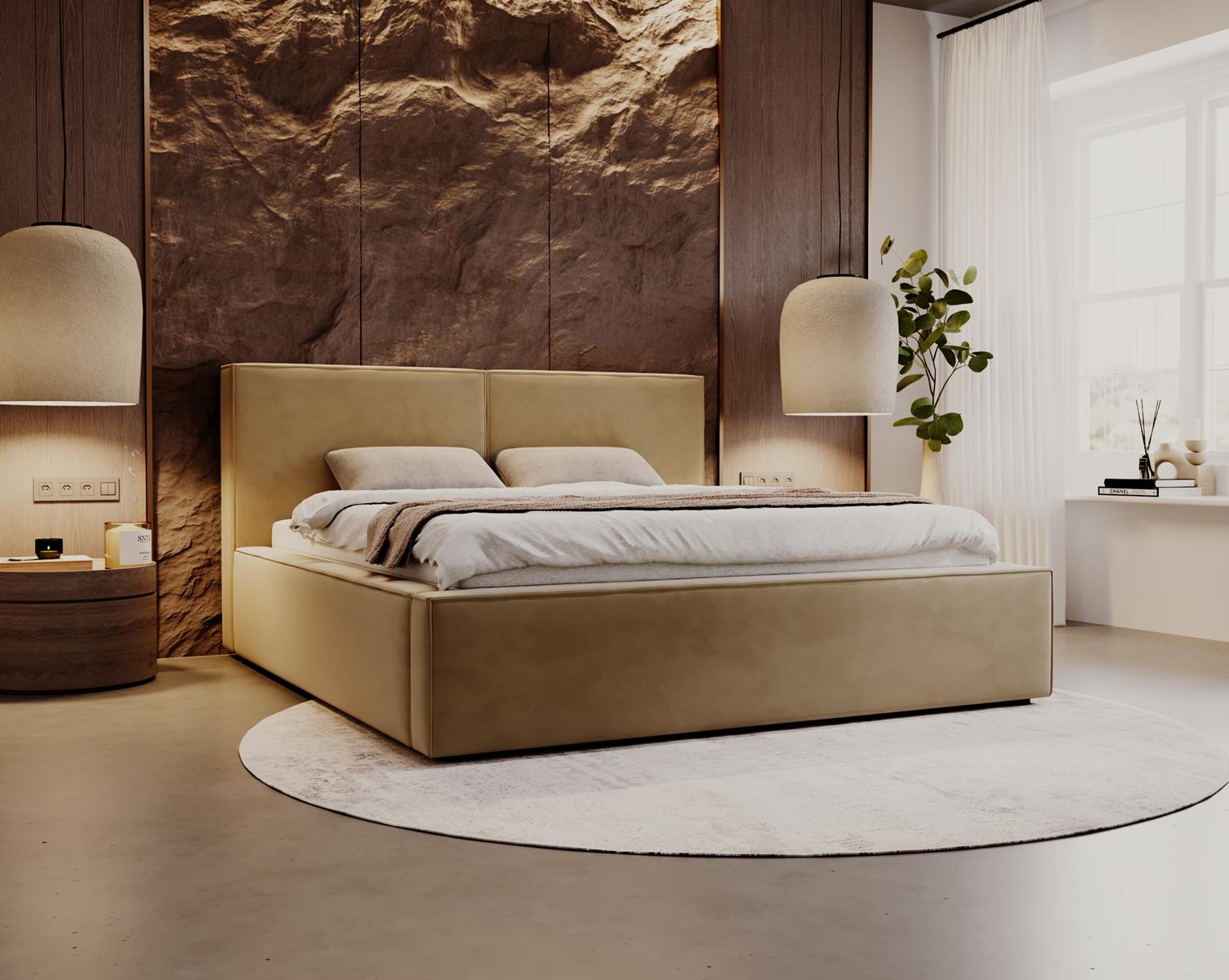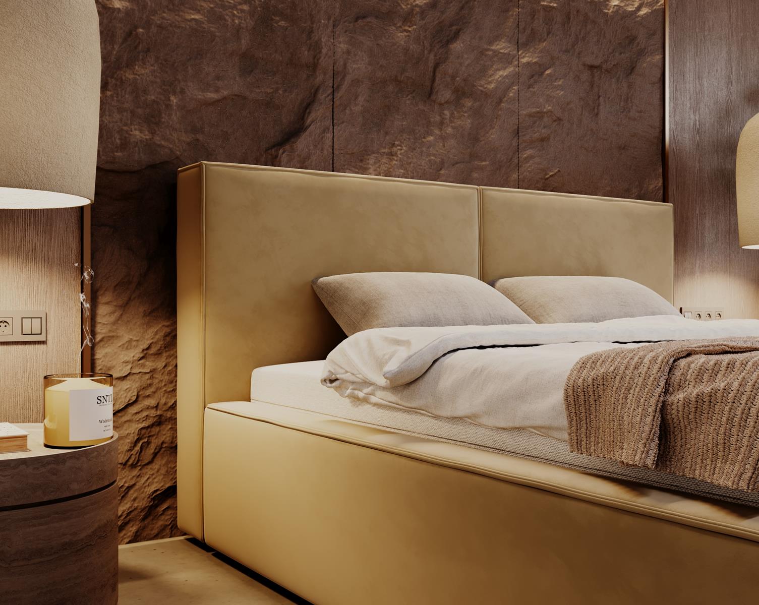 Beżowe eleganckie łóżko sypialniane 140x200 POLS
