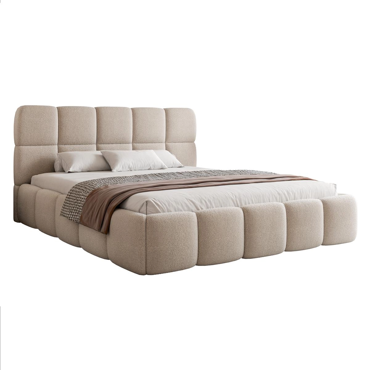 Beżowe łóżko tapicerowane chmurka baranek MICO