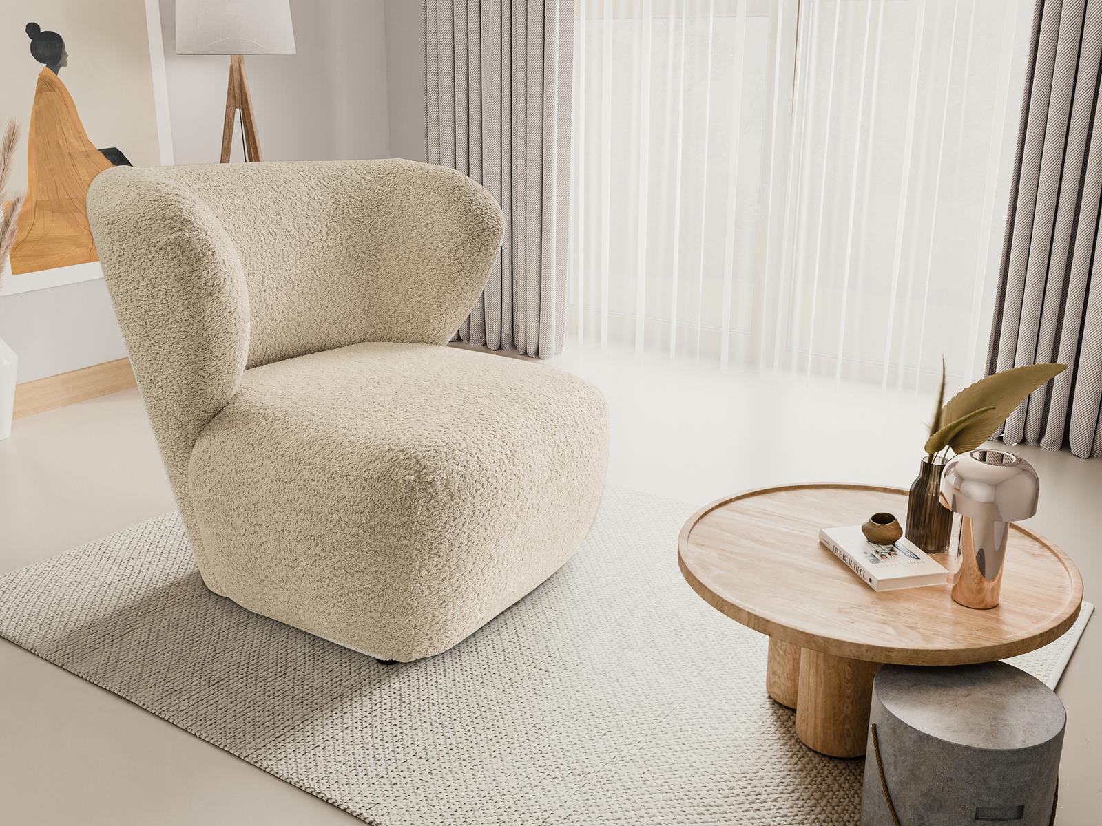 Tapicerowany fotel w tkaninie bouclé beżowy