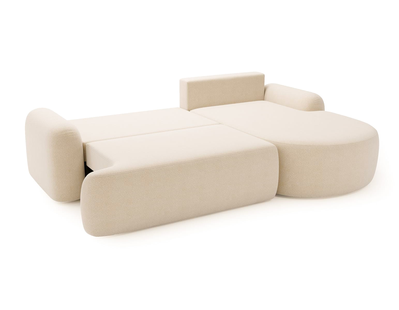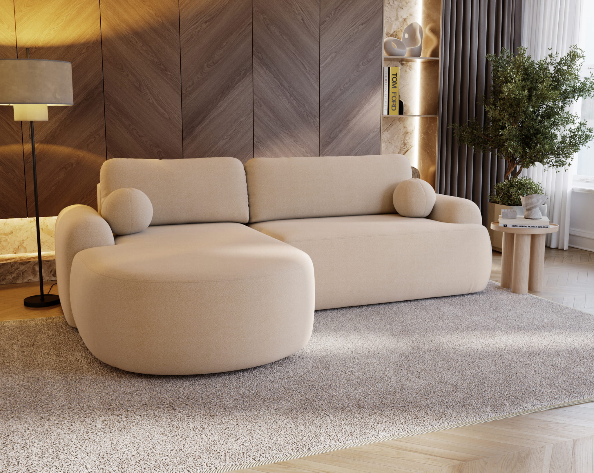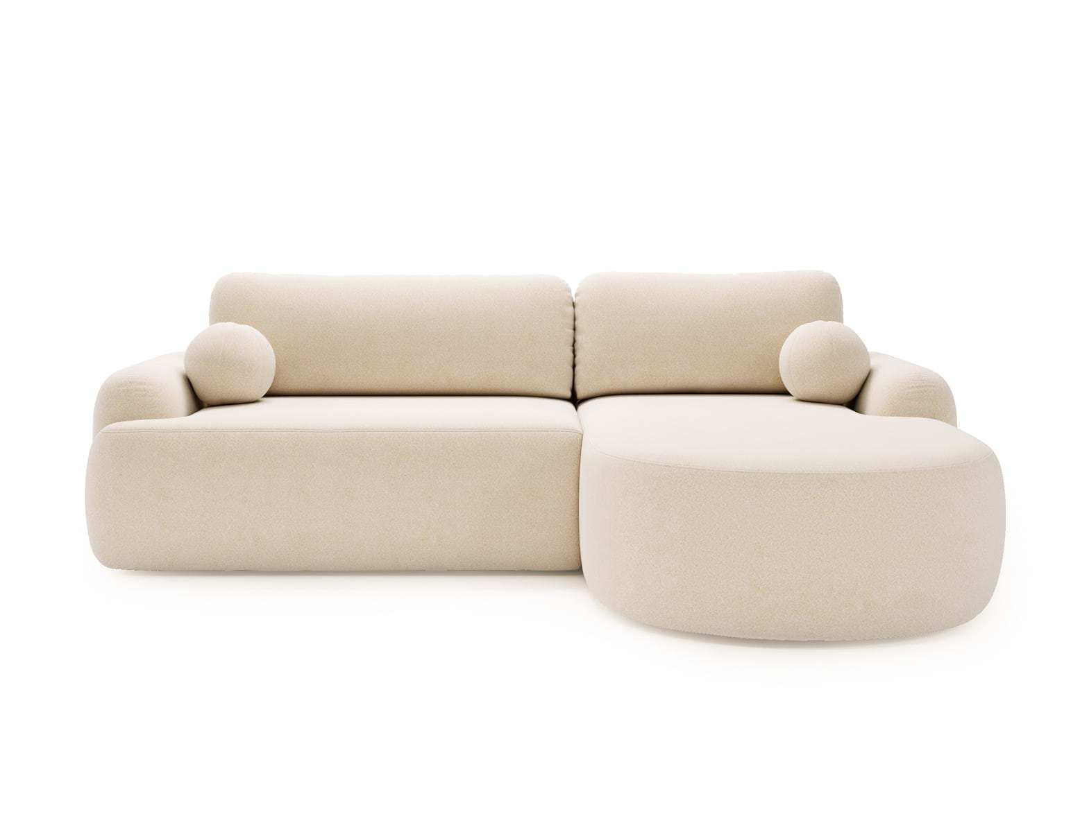 Beżowy narożnik zaokrąglony tkanina boucle szeroka otomana OLIO
