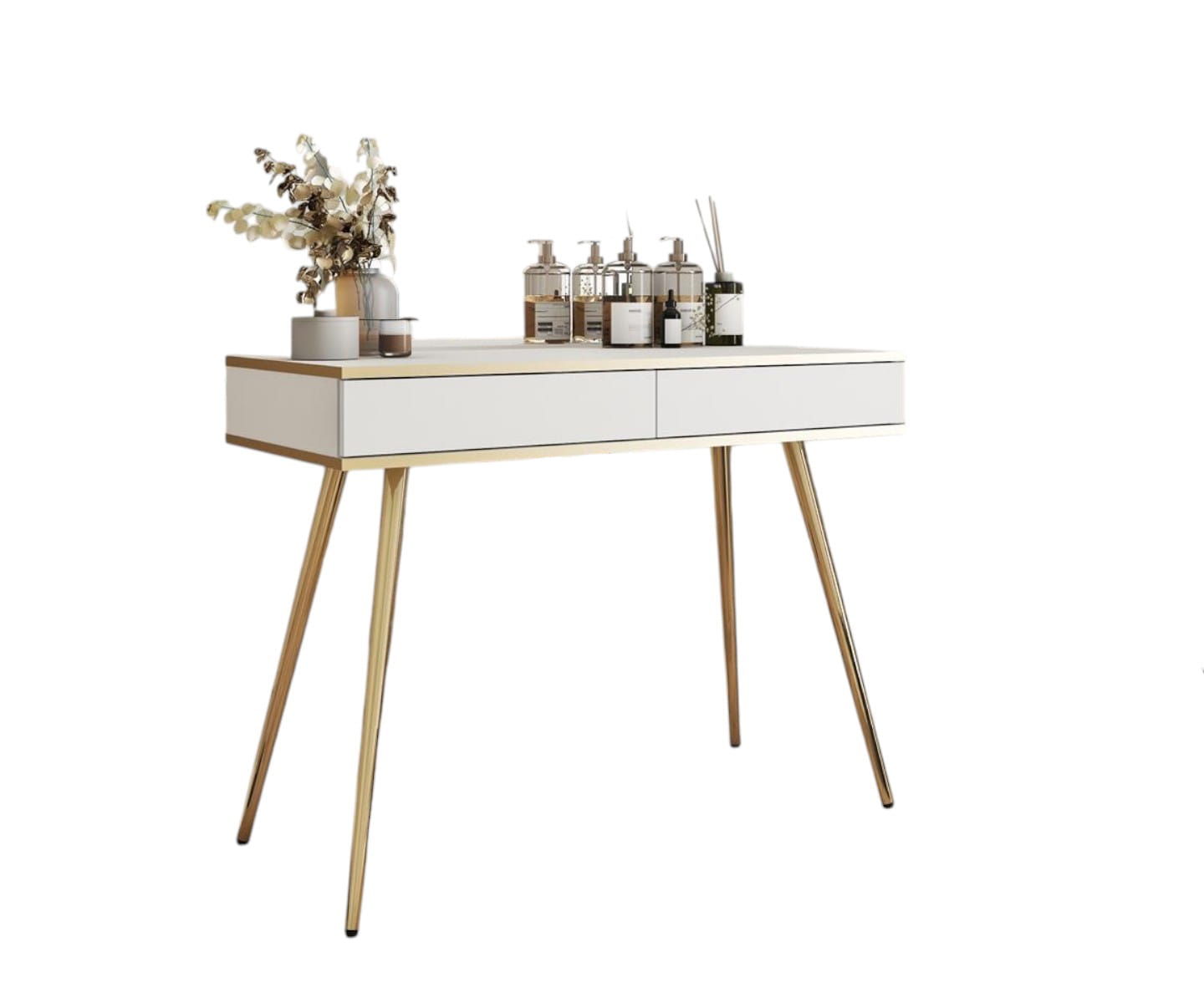 Biała toaletka glamour do sypialni POLO ZŁOTA PODSTAWA