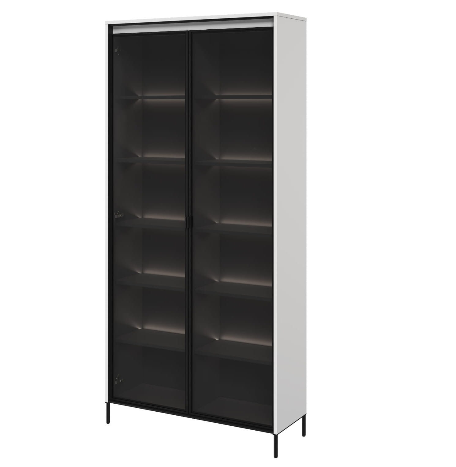 Biała witryna z przeszklonym frontem i LED do salonu FLORES