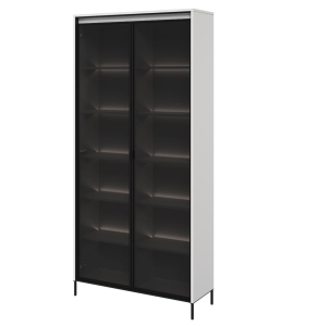 Nowoczesna witryna z przeszklonym frontem w kolorze białym to doskonały wybór dla osób ceniących elegancję, funkcjonalność i wysoką jakość wykonania. Dzięki zastosowaniu szkła hartowanego mebel prezentuje się lekko i designersko, a jednocześnie zapewnia bezpieczeństwo użytkowania. Oświetlenie LED subtelnie podkreśla wnętrze witryny, eksponując książki, porcelanę, dekoracje czy szkło, tworząc przytulny i wyjątkowy klimat w salonie, jadalni lub gabinecie.