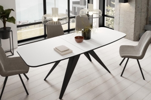 Biały stół z czarną podstawą rozkładany 180-220 cm CARRINGTON
