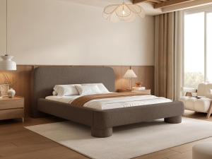 Designerskie łóżko tapicerowane w brązowej tkaninie szenilowej