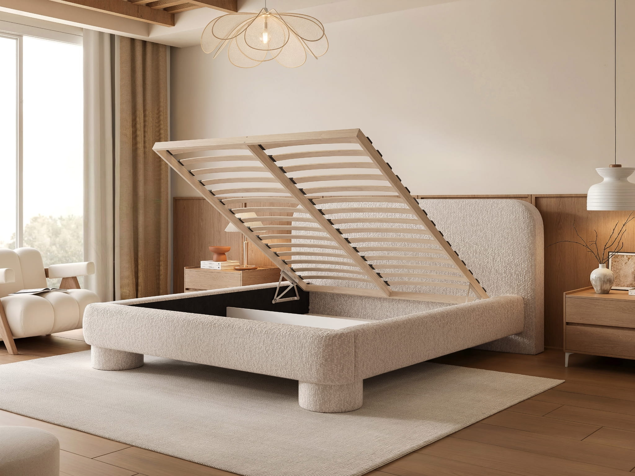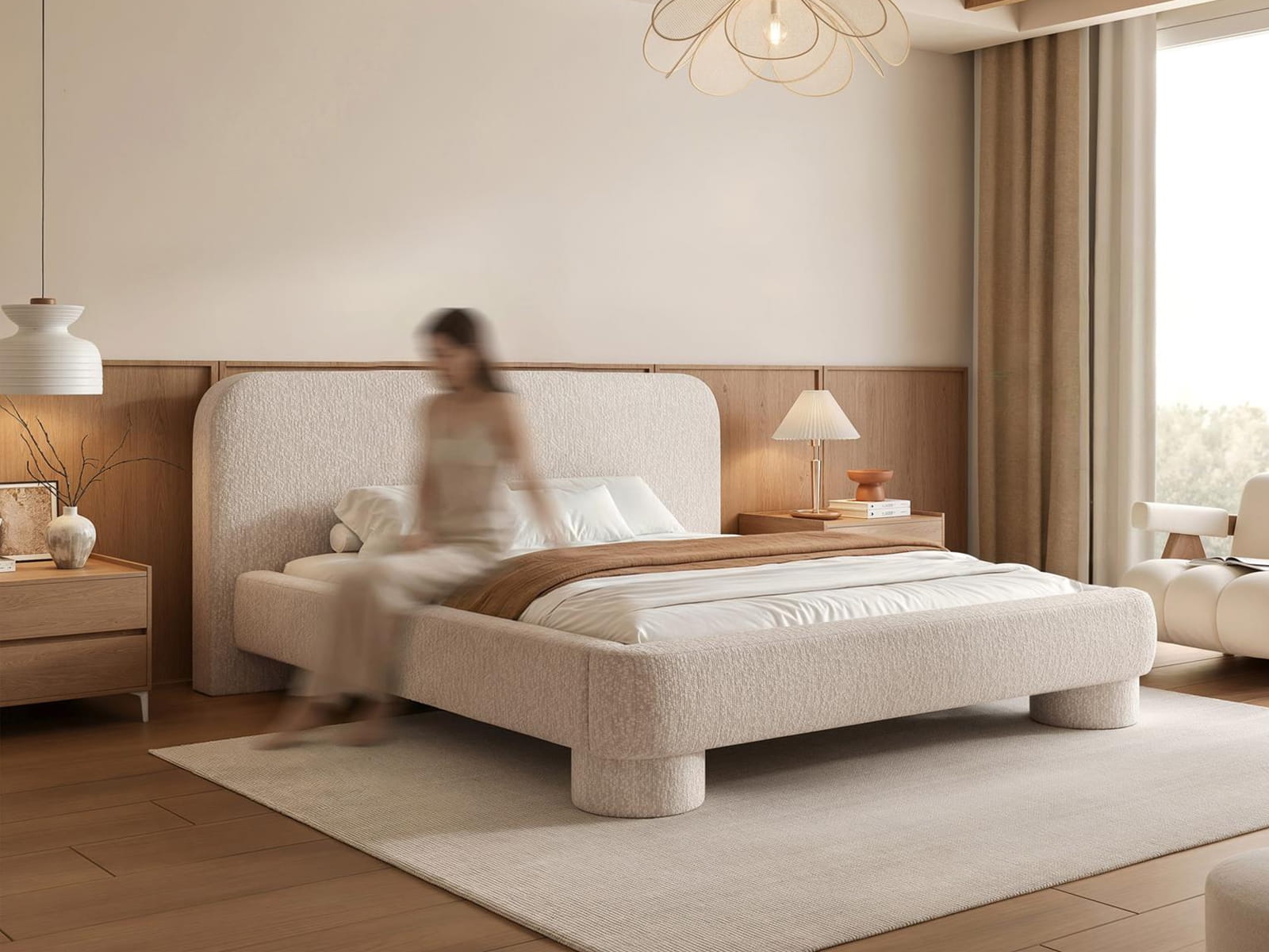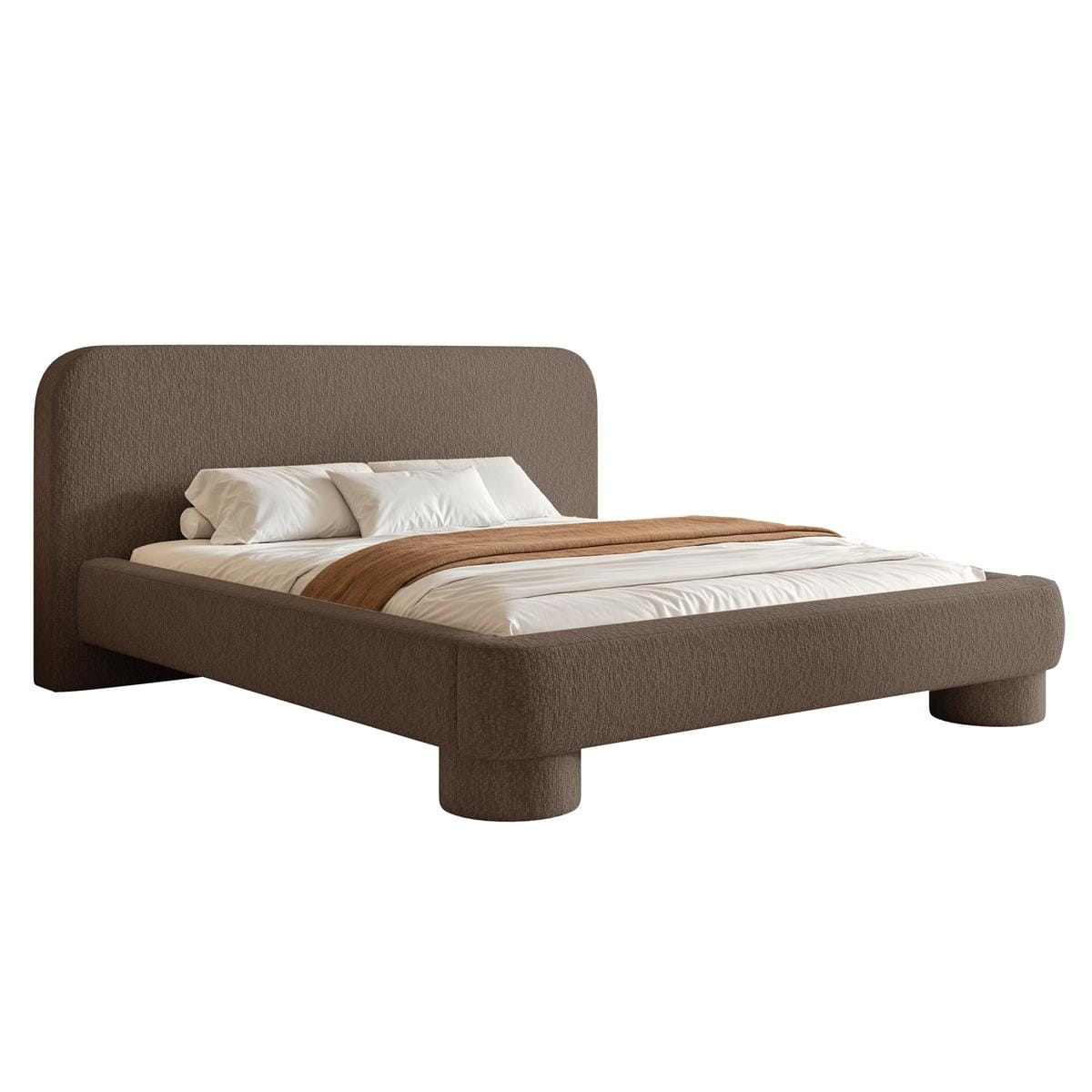 Brązowe łóżko tapicerowane na designerskich nóżkach KUMO