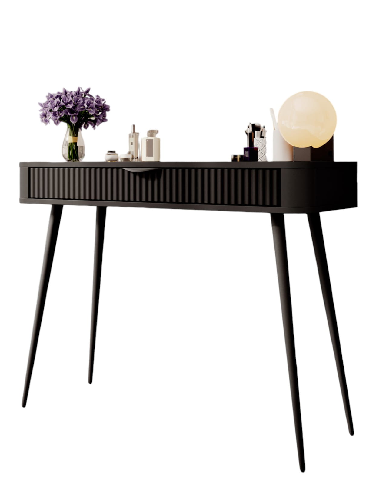 Czarna toaletka z szufladą do sypialni lamele BELLO