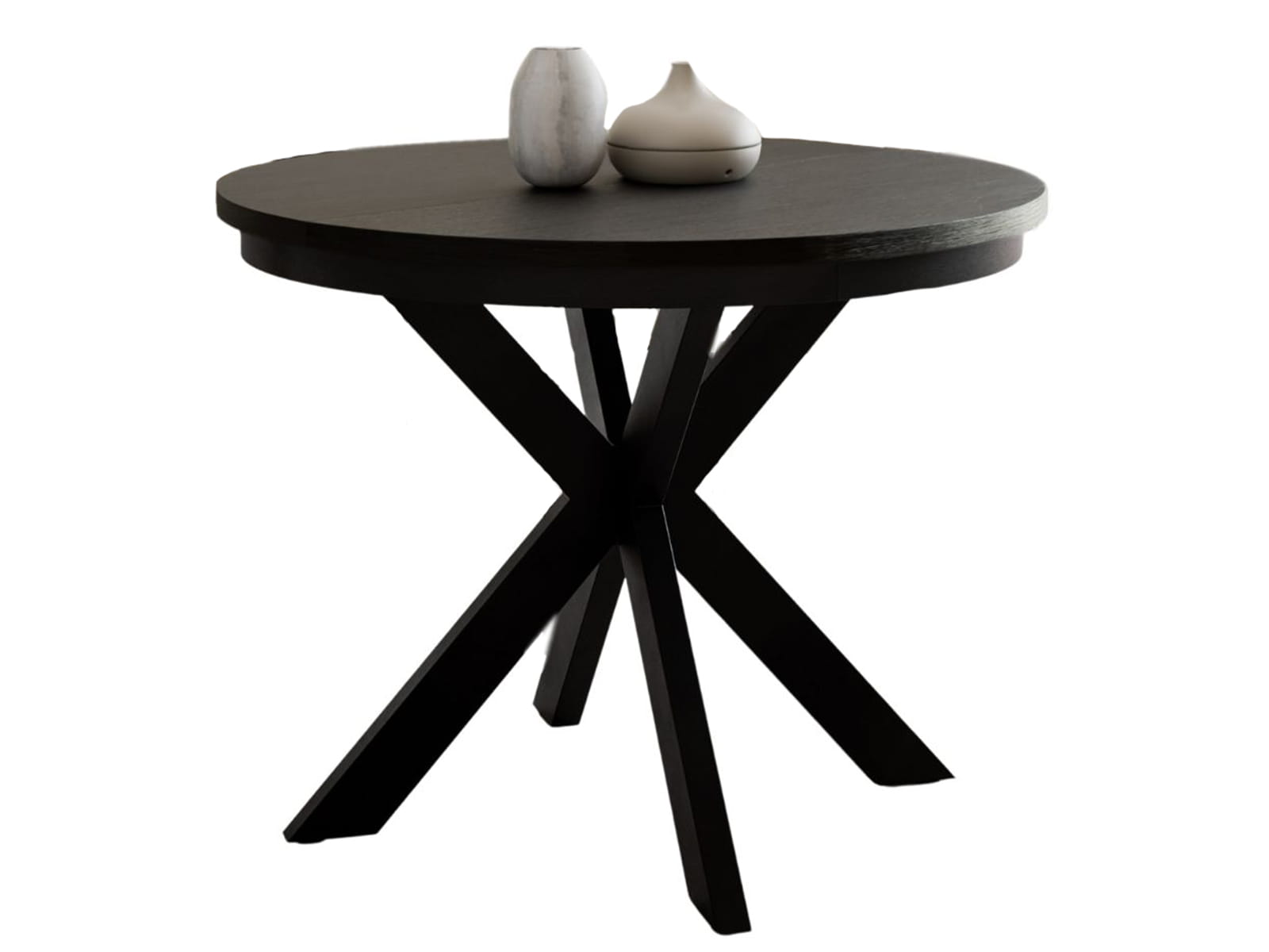 Odkryj okrągły, rozkładany stół w kolorze czarnym, który łączy nowoczesną elegancję, wyrazisty styl i funkcjonalność. Głęboka, ponadczasowa czerń doskonale wpisuje się w aktualne trendy wnętrzarskie i świetnie komponuje się z aranżacjami w stylu nowoczesnym, industrialnym oraz loftowym, nadając wnętrzu charakteru i wyrafinowania.