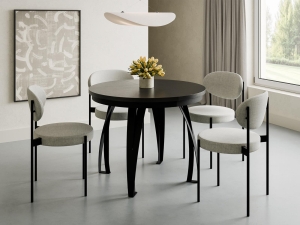 Model dostępny jest w średnicy 100 cm lub 120 cm. Każdy wariant wyposażony jest w dwie wkładki o długości 38 cm, które umożliwiają znaczne powiększenie blatu. Przy średnicy 100 cm wkładki należy przechowywać poza blatem. Czarna, metalowa podstawa z czterema solidnymi nogami zapewnia stabilność konstrukcji oraz swobodę ustawienia krzeseł.