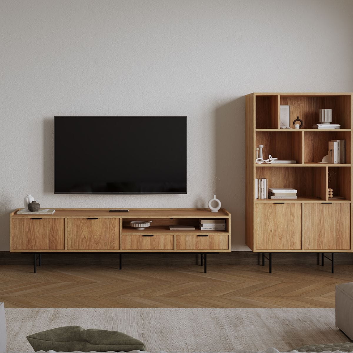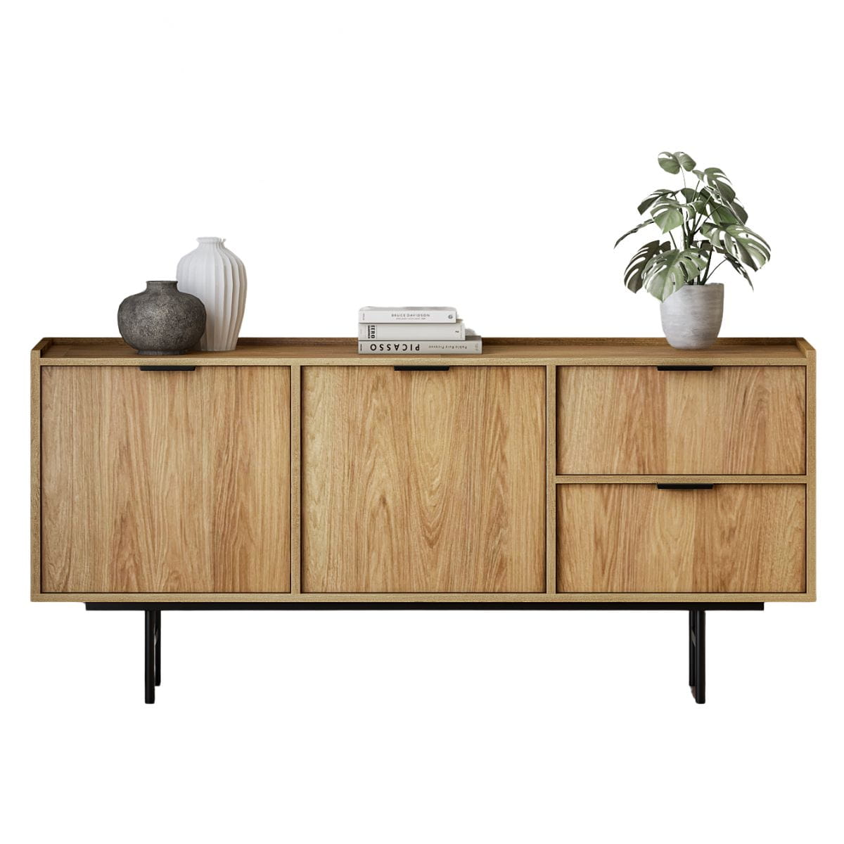 Dzięki kompaktowej wysokości 58 cm, komoda świetnie sprawdzi się zarówno w salonie, sypialni, jak i przedpokoju. Przemyślany układ półek i szuflad zapewnia dużo miejsca na książki, zastawę stołową, dokumenty czy dekoracje.
