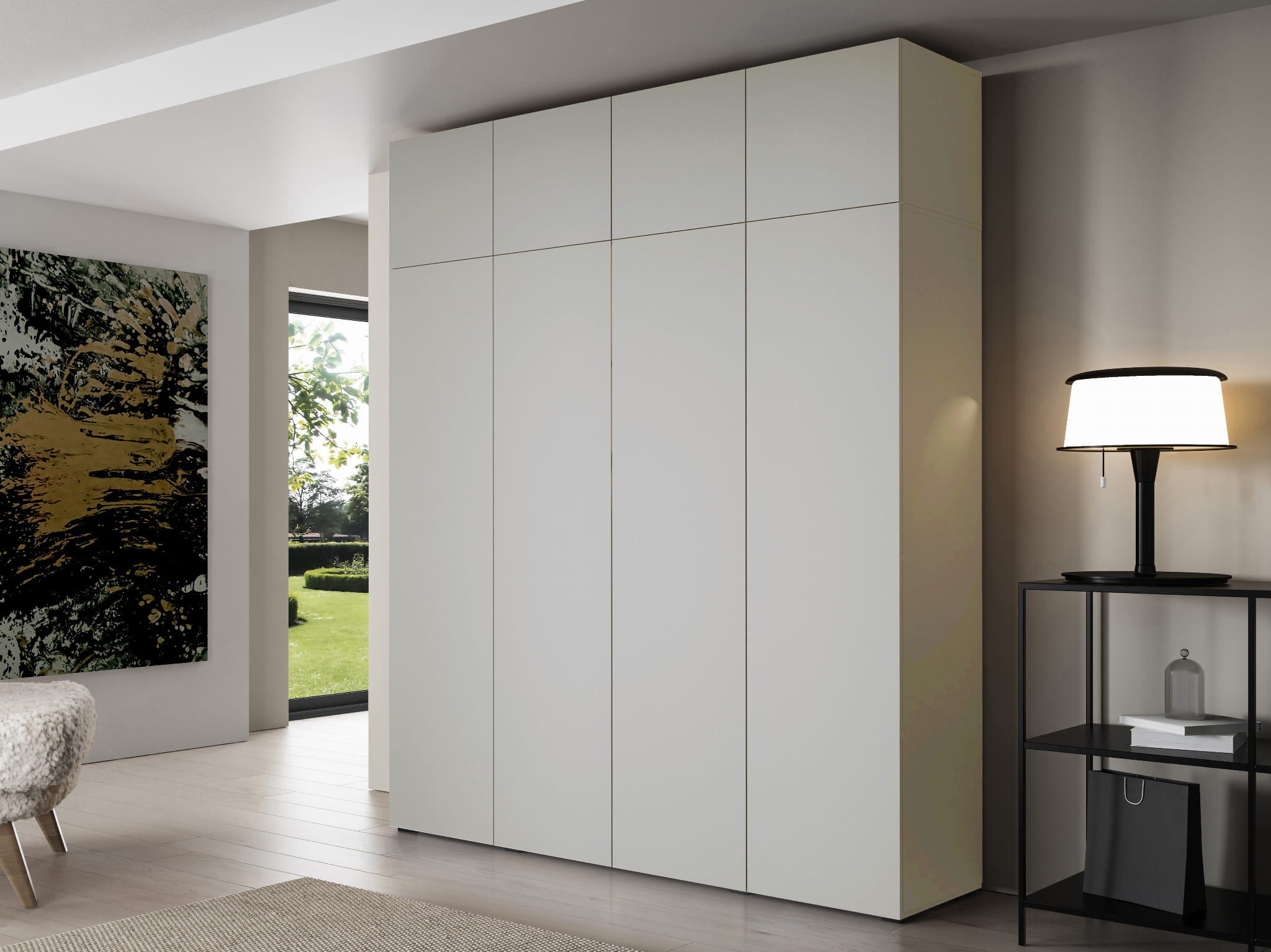 Designerska szafa uchylna kaszmirowa gładkie fronty bez uchwytów STELLO