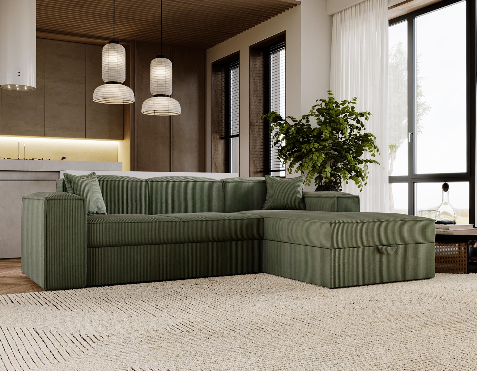 Designerski narożnik do salonu rozkładany SANTO OLIWKA