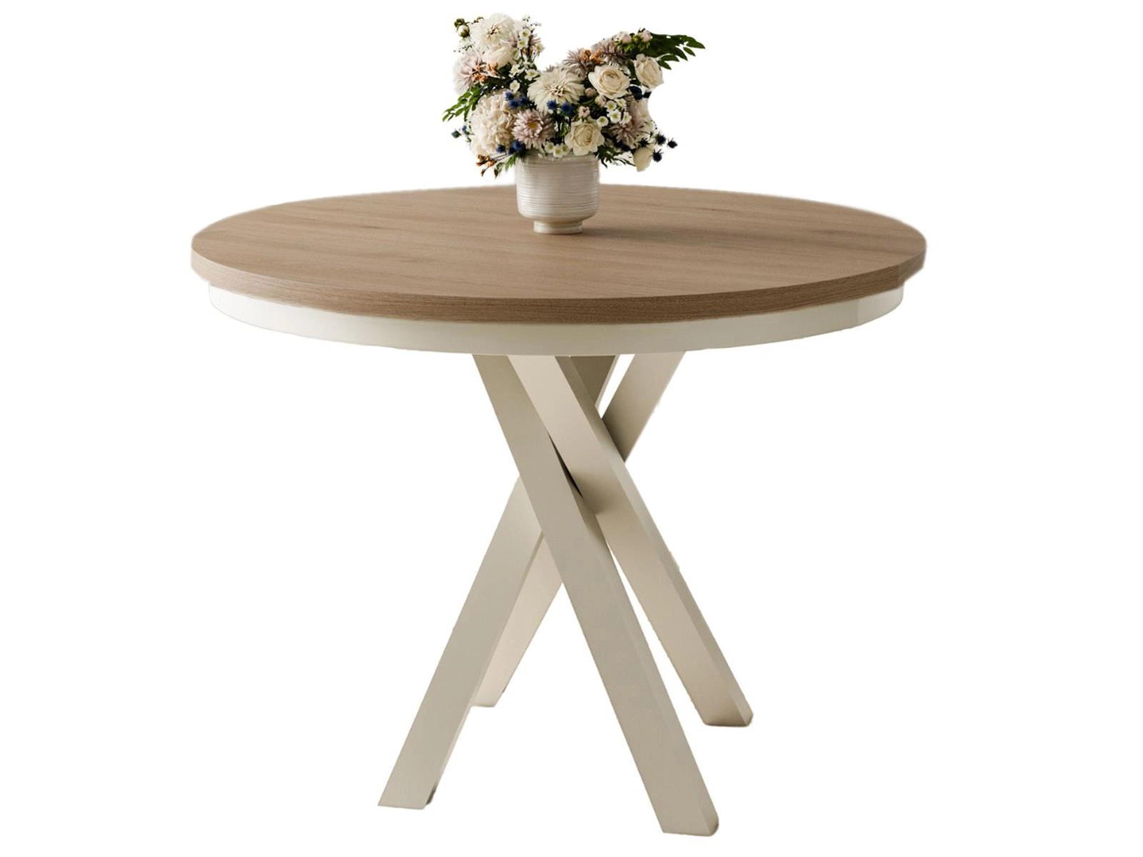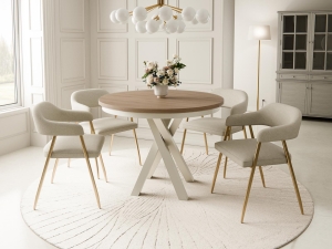 Okrągły stół sprzyja wspólnemu spędzaniu czasu - każdy ma ze sobą kontakt, co czyni go idealnym wyborem na rodzinne posiłki czy spotkania z przyjaciółmi.