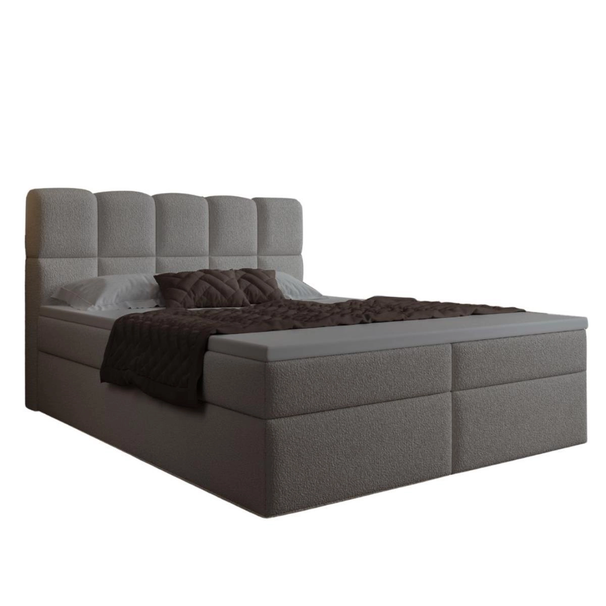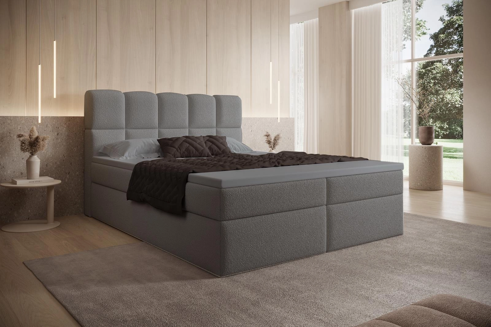 Designerskie grafitowe łóżko kontynentalne boucle z materacem PALEO