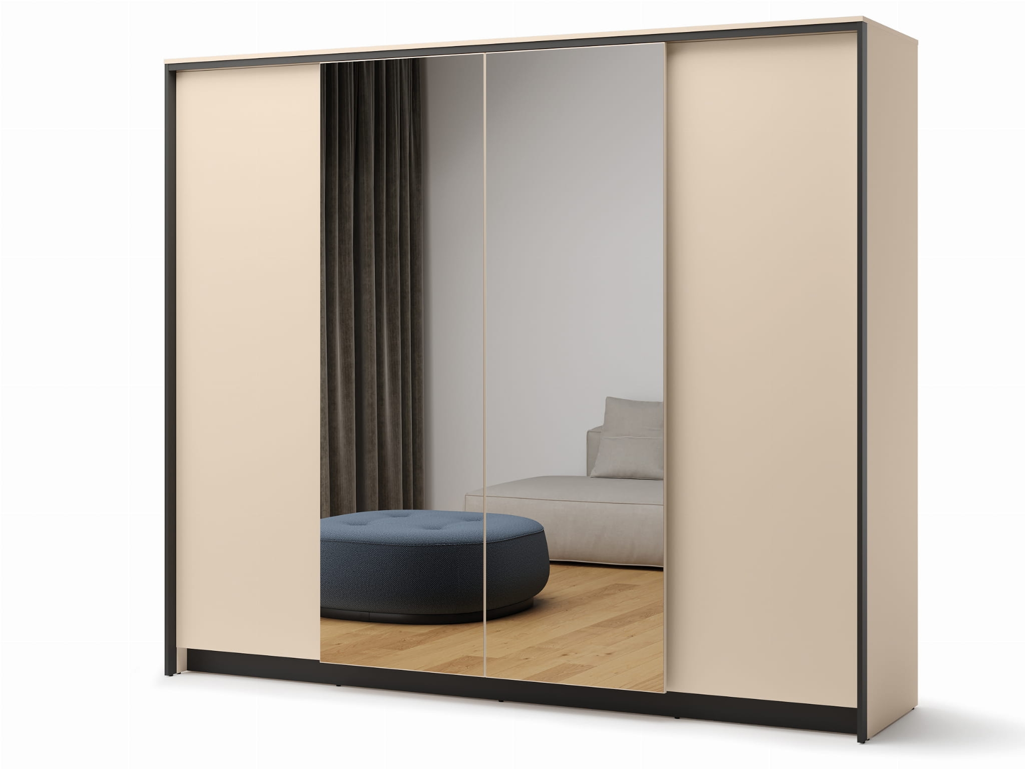 Duża beżowa szafa z lustrem 250 cm do sypialni ELLA