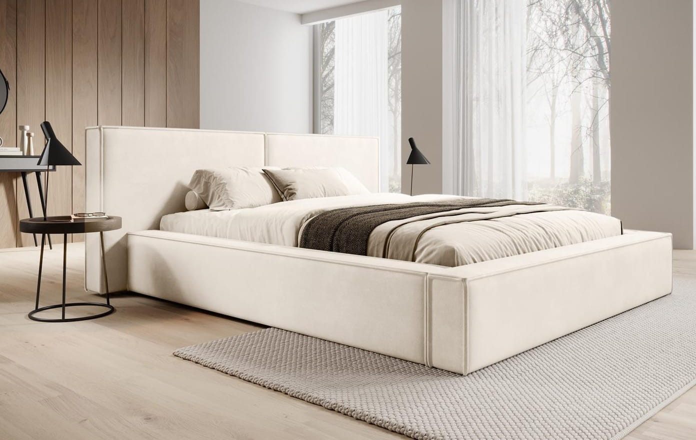 ✅ Nowoczesna, minimalistyczna forma – Proste, geometryczne linie i subtelne wykończenie sprawiają, że łóżko idealnie komponuje się z przestronnymi, luksusowymi wnętrzami. Bez zbędnych detali, ale z klasą.