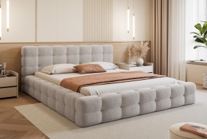 Duże łóżko do sypialni tapicerowane typu chmurka szary baranek ARI