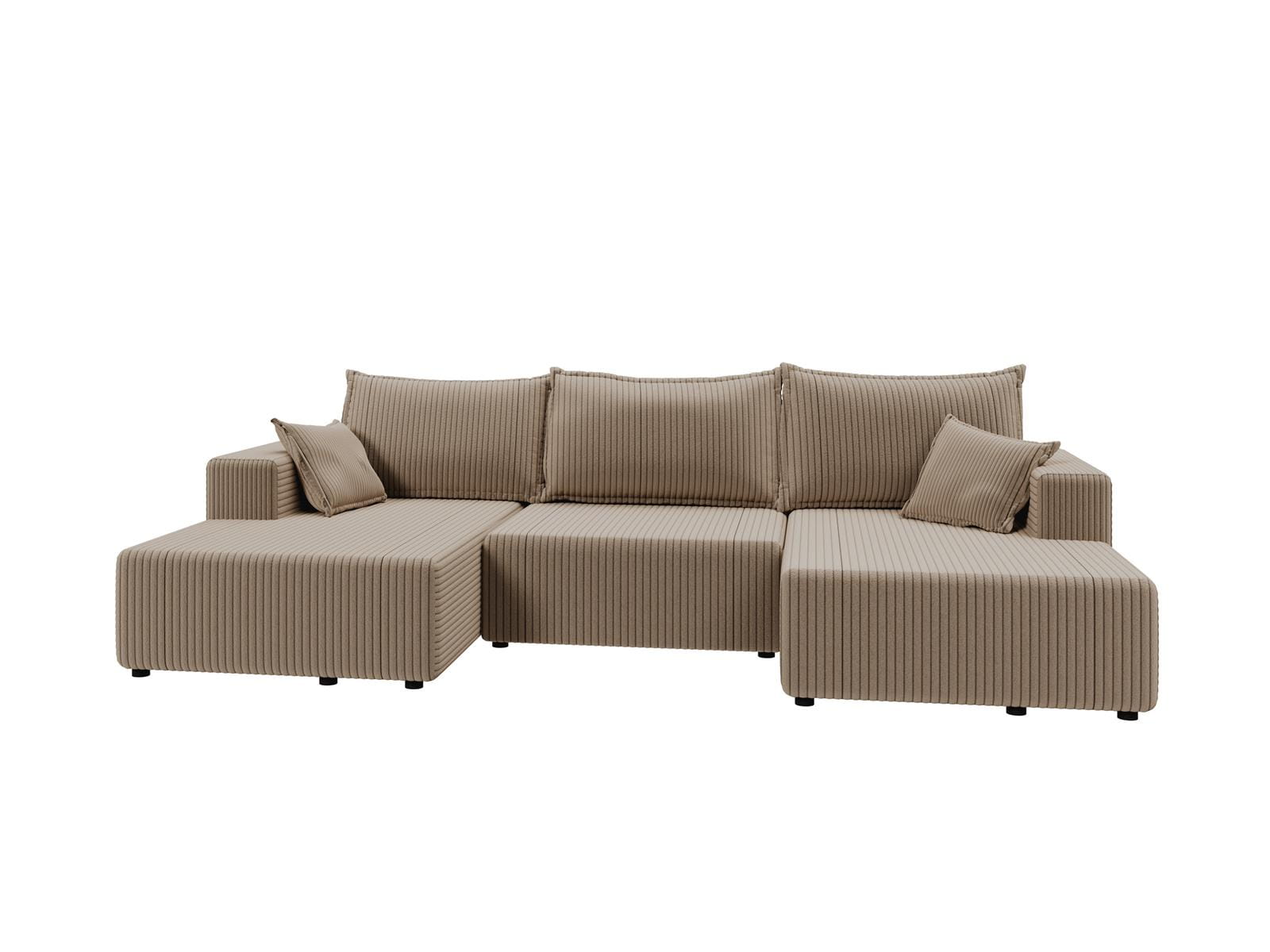 Duży beżowy narożnik z funkcją spania GRUBY SZTRUKS LILIA
