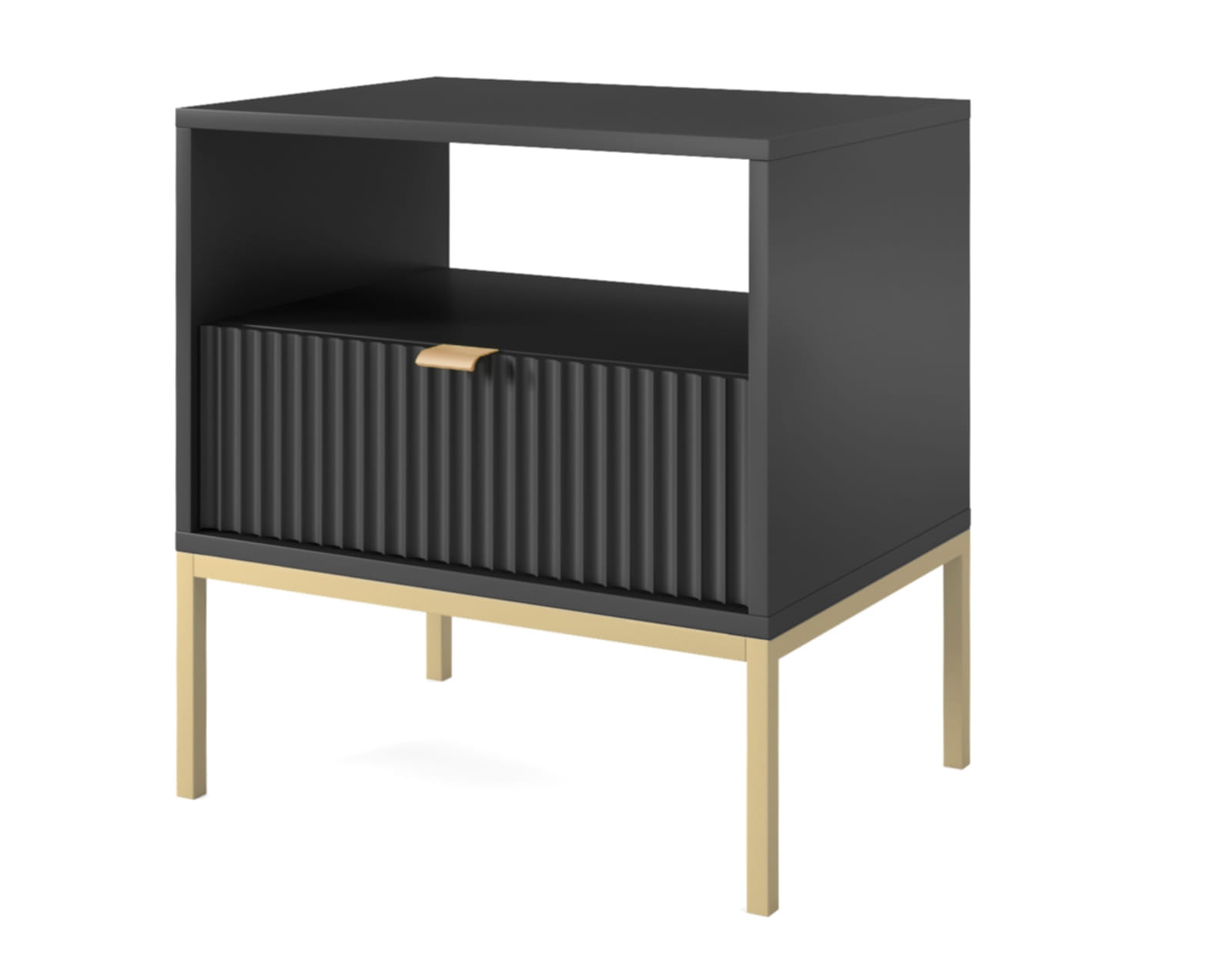 Czarna szafka nocna z ryflowanym frontem NANCY