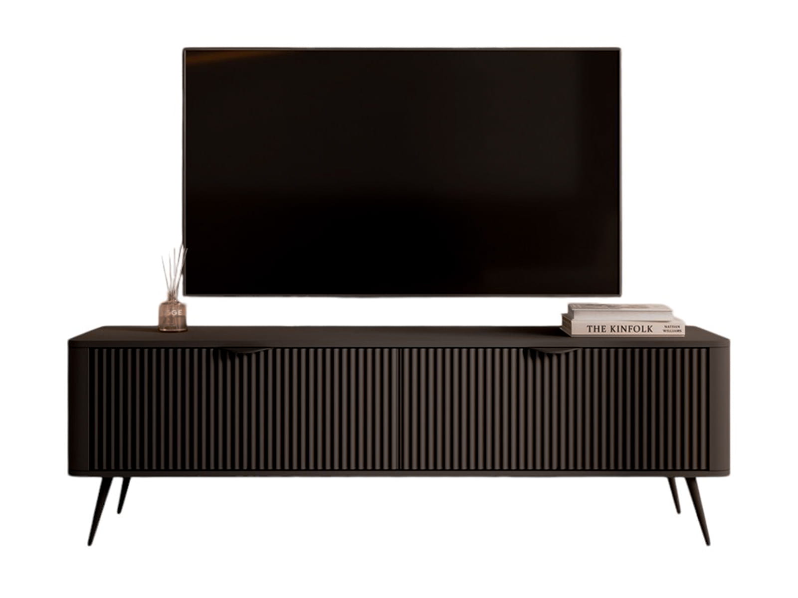 Czarna ryflowana komoda pod telewizor modna BELLO