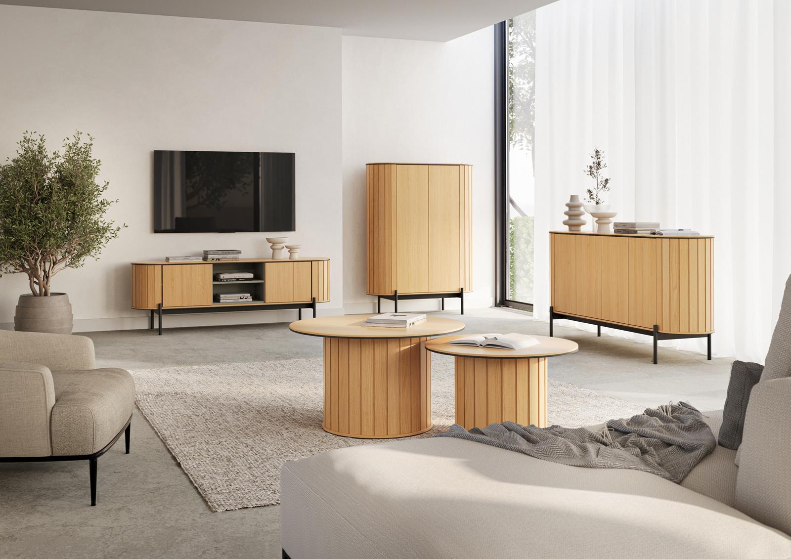 Elegancka witryna w kolorze dąb Vincenza to połączenie klasyki i nowoczesności, które doskonale wpisuje się w aranżacje w stylu loft, skandynawskim czy minimalistycznym. Smukła bryła mebla osadzona na czarnych, metalowych nogach dodaje lekkości i nadaje wnętrzu industrialnego charakteru.