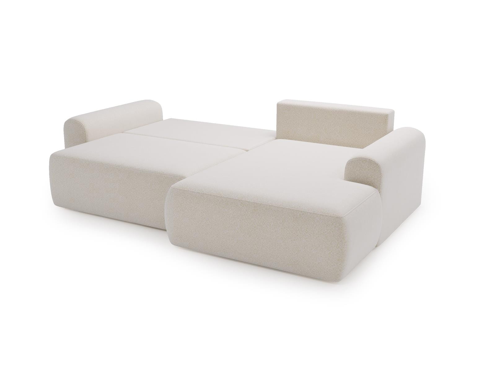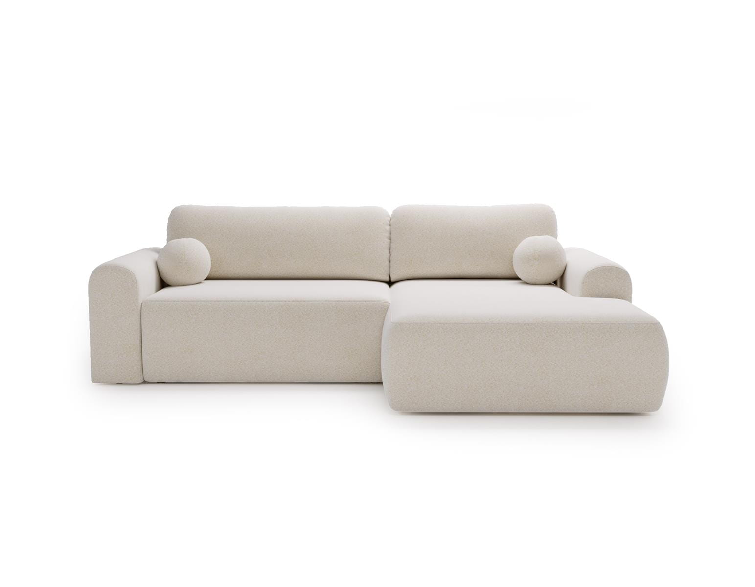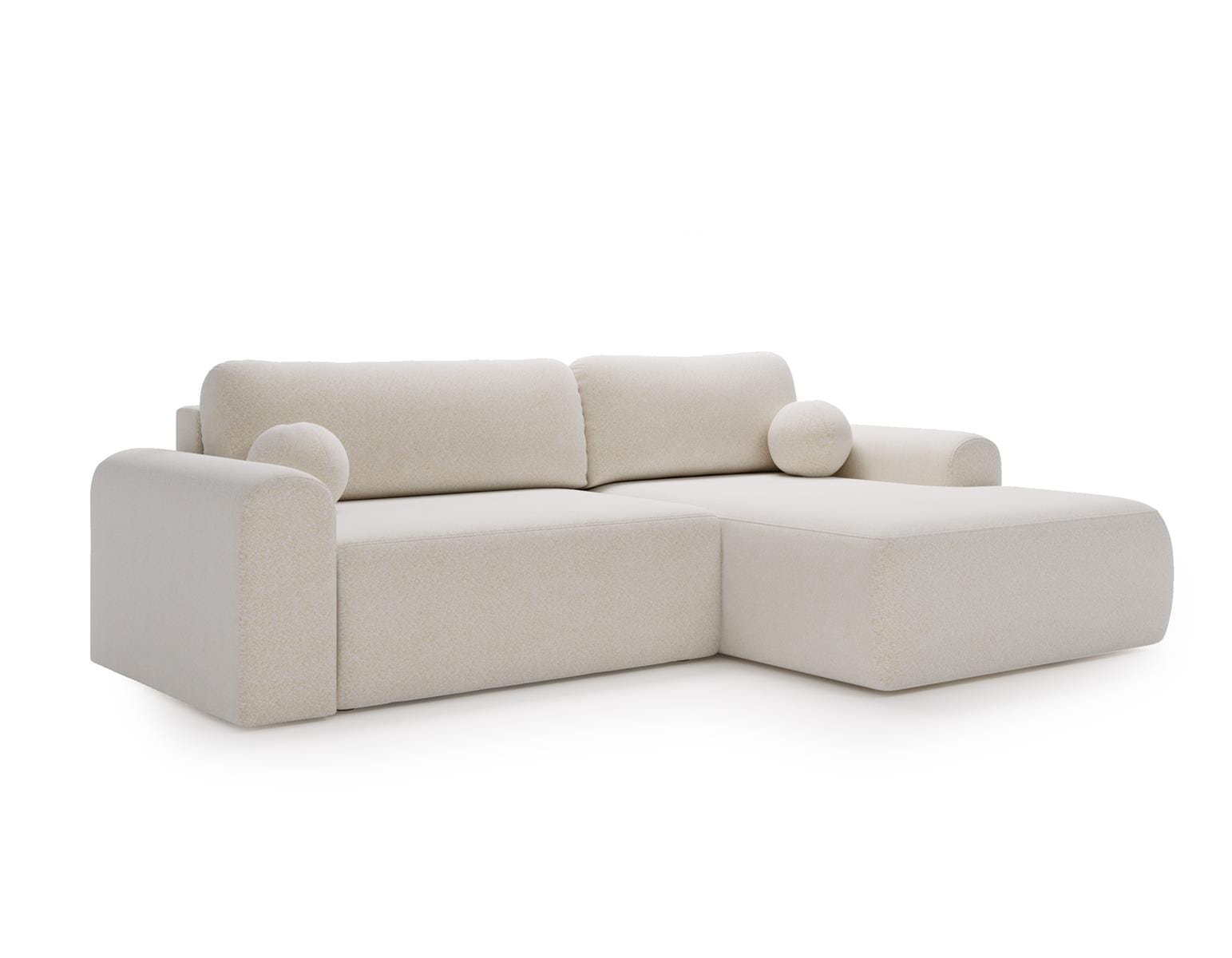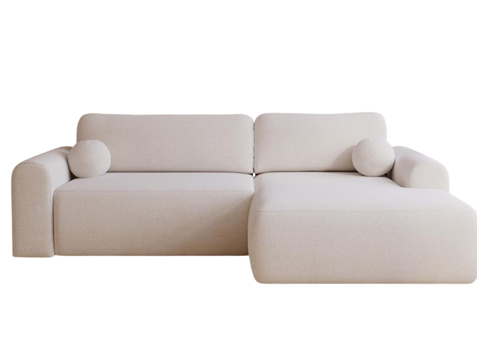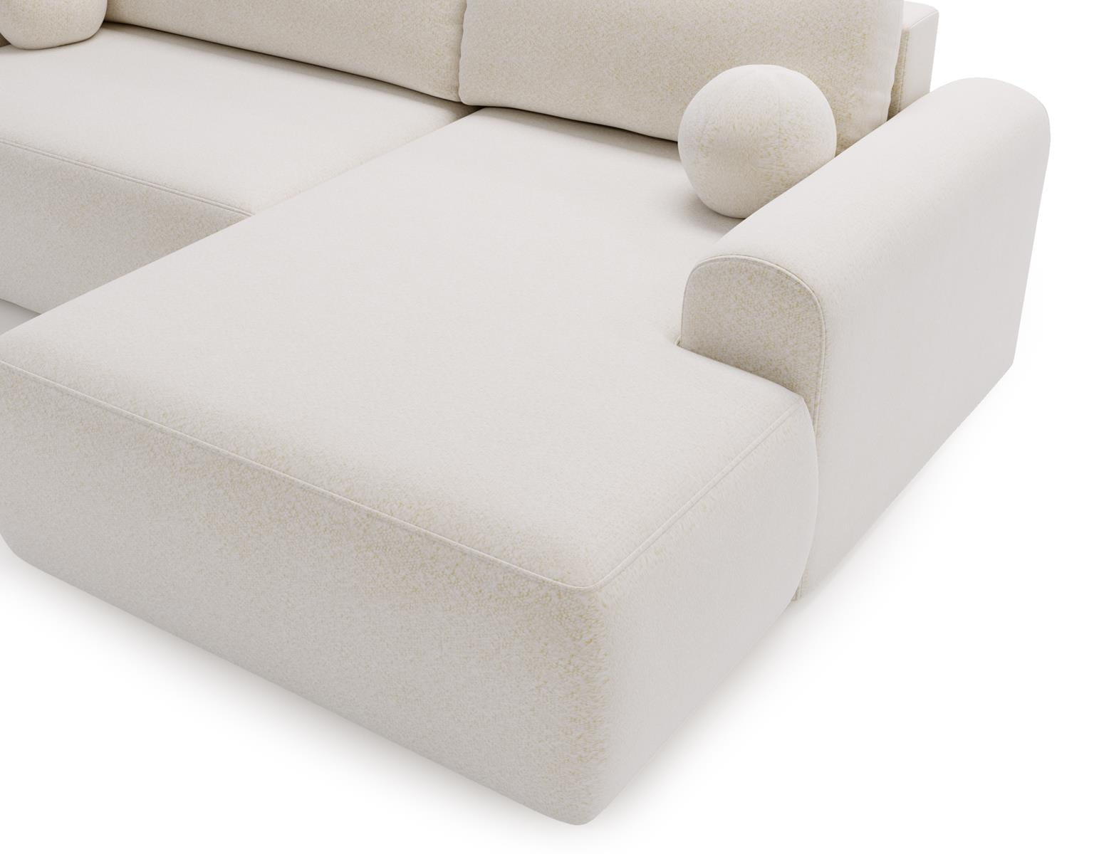 Narożnik posiada funkcję rozkładania, dzięki której w prosty sposób można uzyskać komfortową powierzchnię do spania. To praktyczne rozwiązanie sprawdzi się zarówno na co dzień, jak i podczas wizyt gości. Ergonomiczne siedzisko, miękkie oparcia oraz solidna konstrukcja gwarantują wysoki komfort użytkowania i trwałość na lata. Ten biały narożnik boucle to idealny wybór do eleganckiego salonu, nowoczesnego apartamentu lub stylowego wnętrza premium.