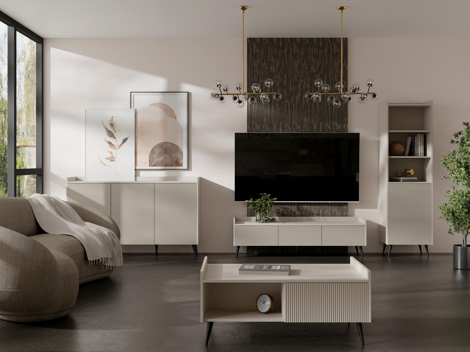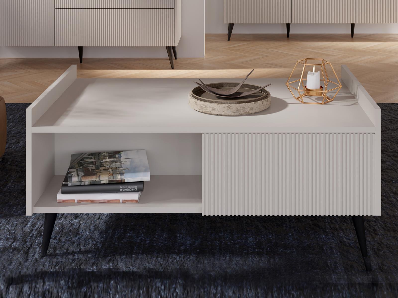 Elegancki stolik kawowy ryflowany z szufladą TWINKL