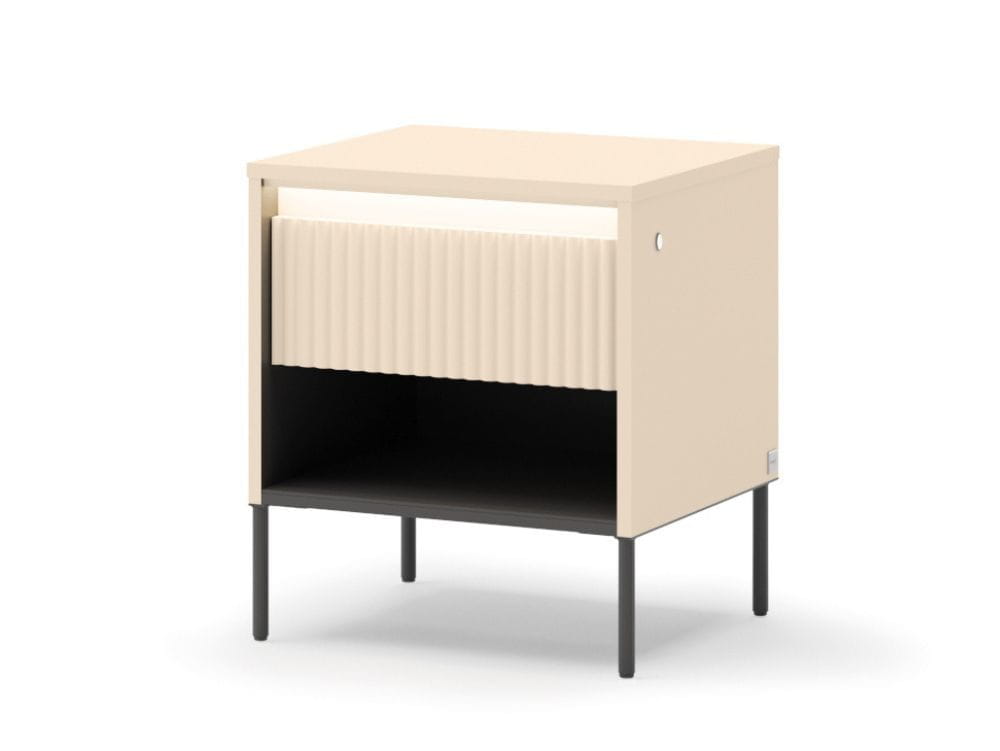 Beżowy stolik nocny z ryflowanym frontem i oświetleniem LED