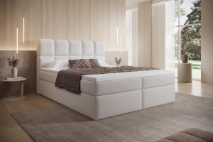 Dzięki uniwersalnej białej tapicerce łóżko doskonale komponuje się zarówno z nowoczesnymi, jak i klasycznymi aranżacjami wnętrz, wprowadzając do sypialni świeżość, elegancję i harmonię.