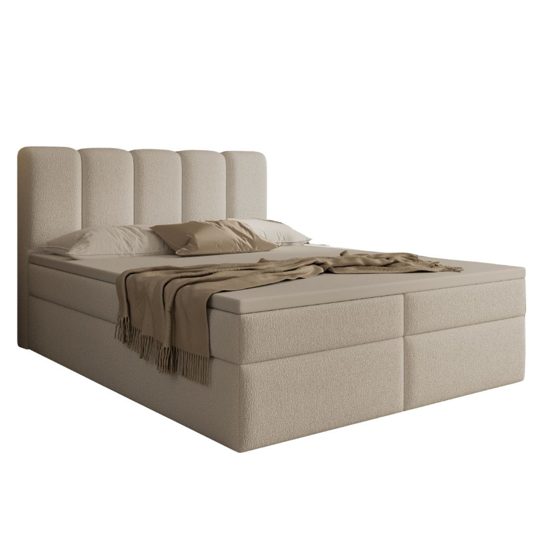 Eleganckie łóżko kontynentalne w beżowej tkaninie boucle LUMI