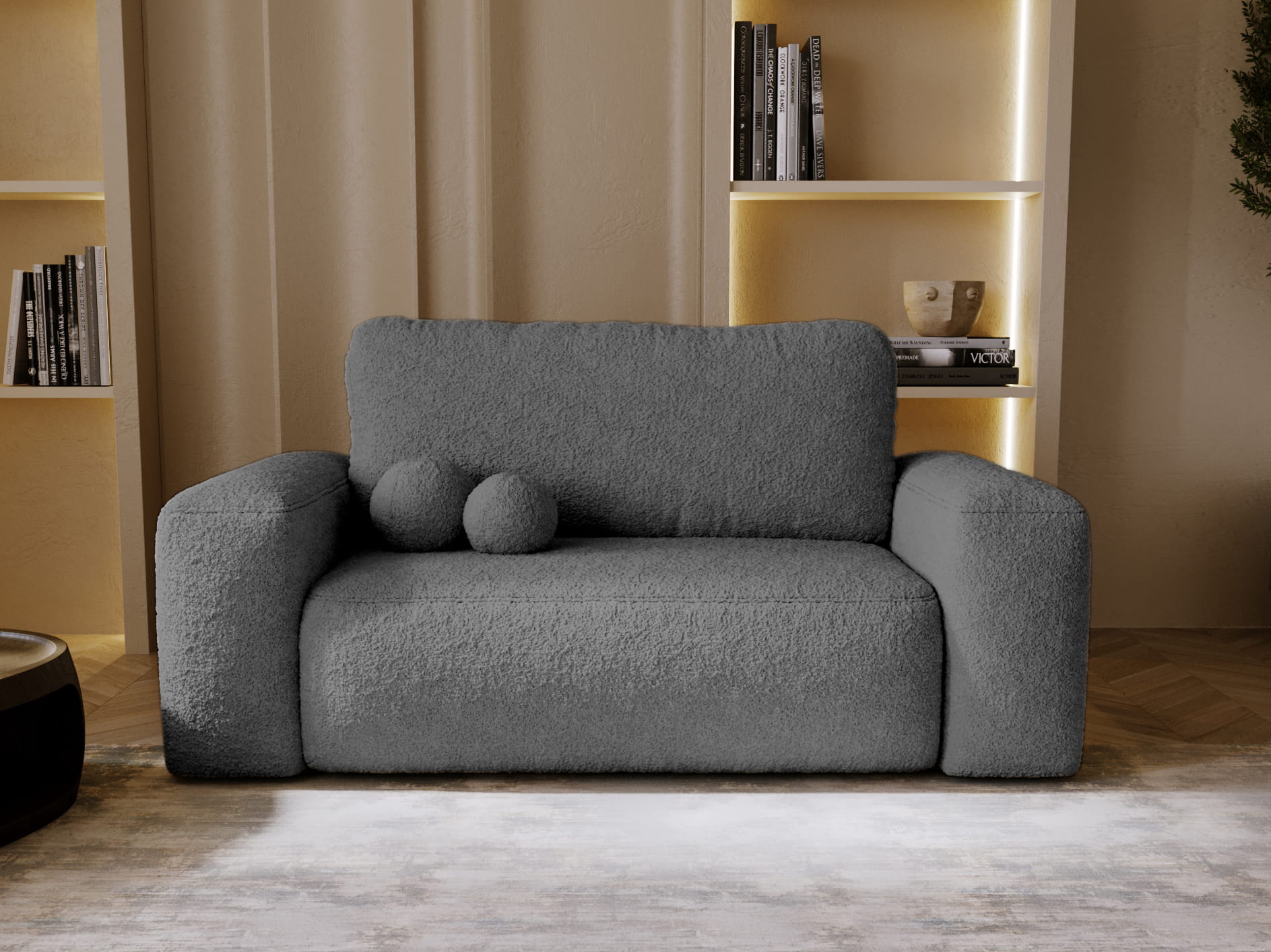 Modna kanapa rozkładana w pluszowej grafitowej tkaninie boucle
