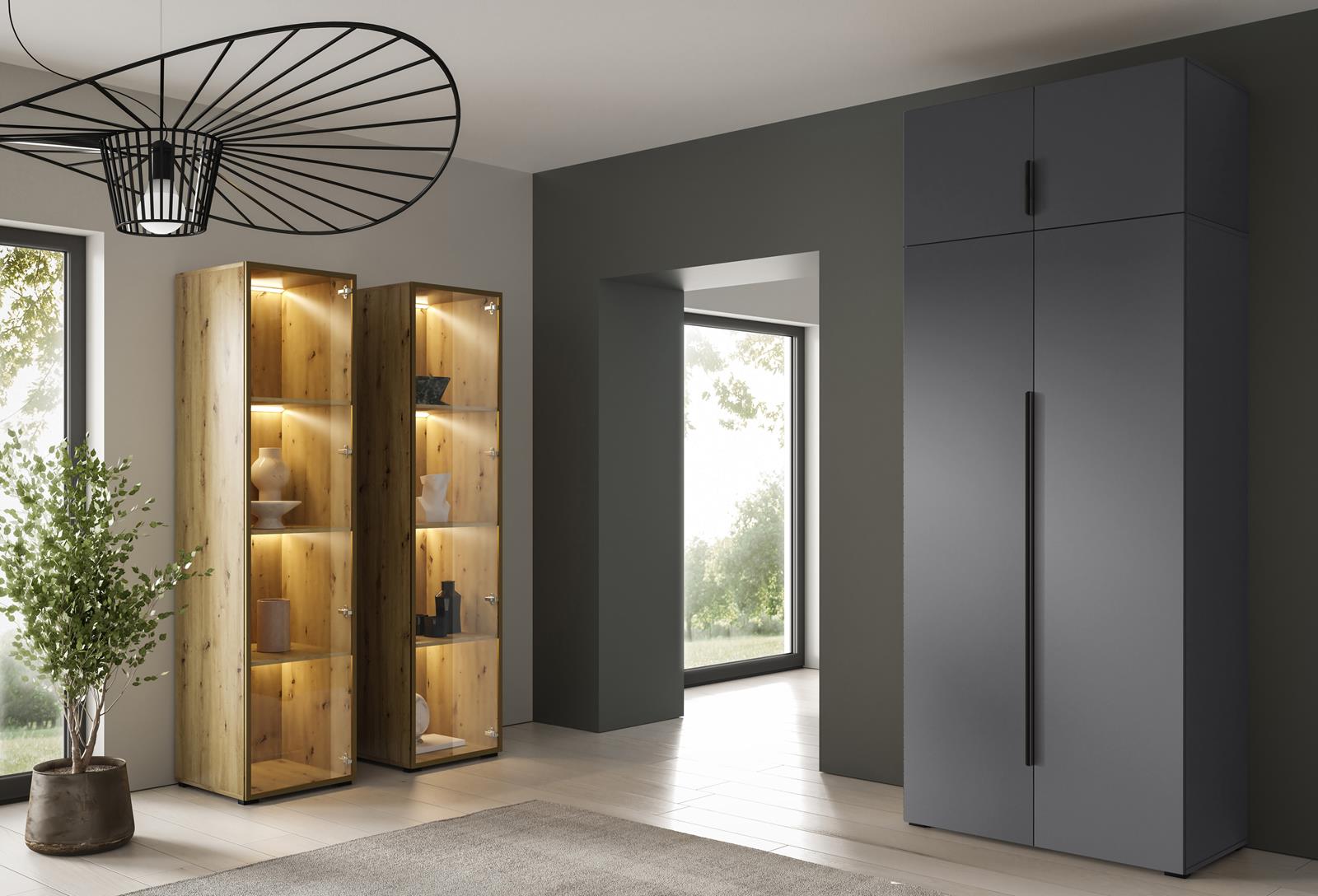 Grafitowa szafa wysoka z dwoma uchylnymi drzwiami STELLO