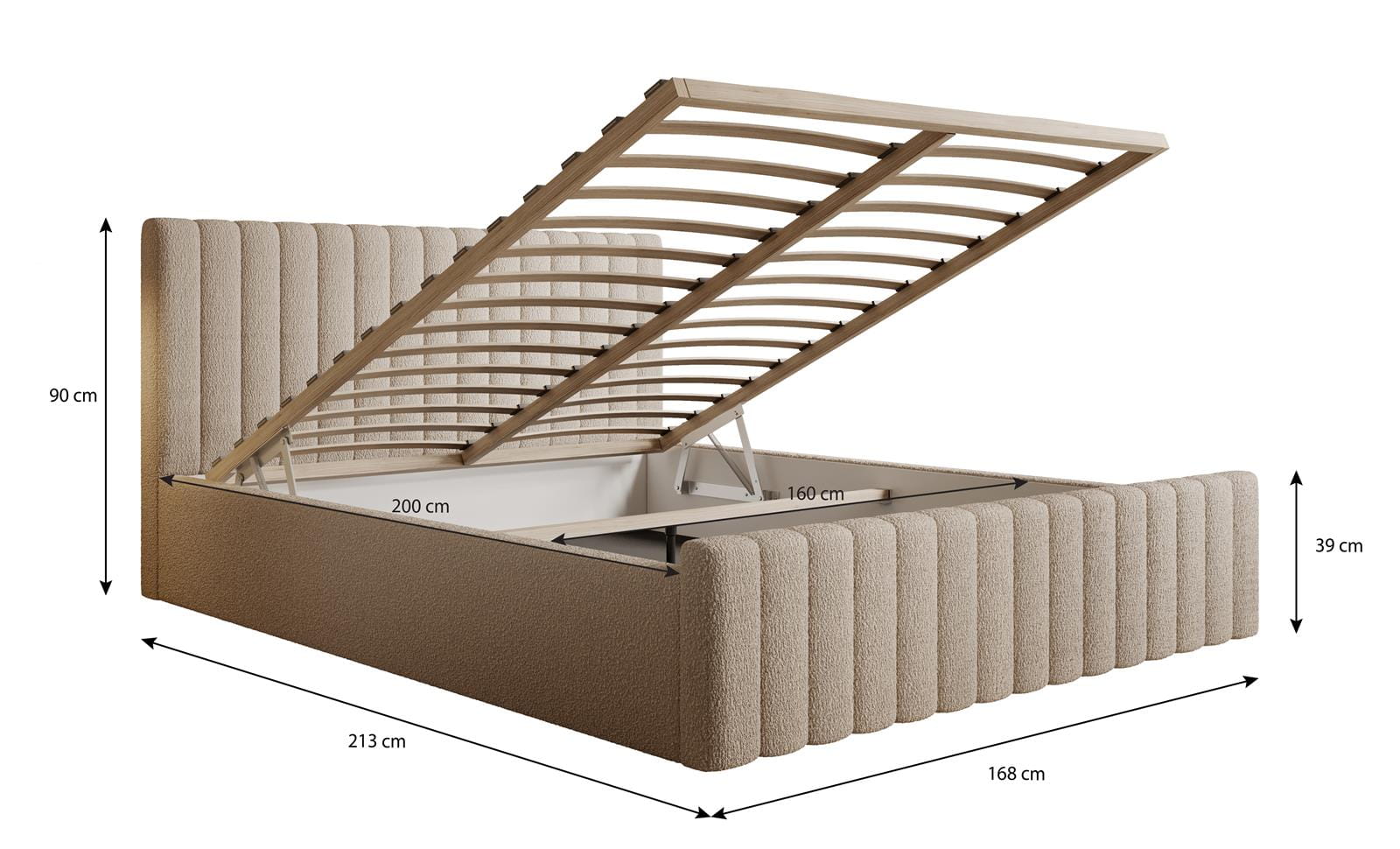 Grafitowe łóżko boucle BUBBLE II 180x200 cm