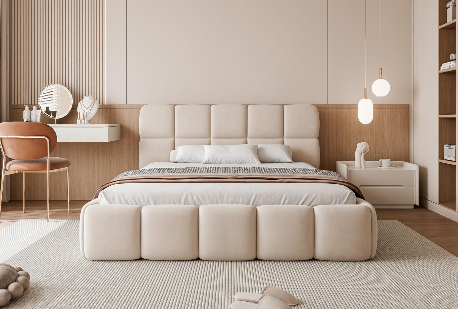 Wysokie, tapicerowane wezgłowie zapewnia wygodne podparcie podczas czytania czy relaksu, a solidna rama gwarantuje stabilność i trwałość konstrukcji. Zastosowanie wysokiej jakości materiałów sprawia, że łóżko jest odporne na codzienne użytkowanie i przez długi czas zachowuje swój nienaganny wygląd.