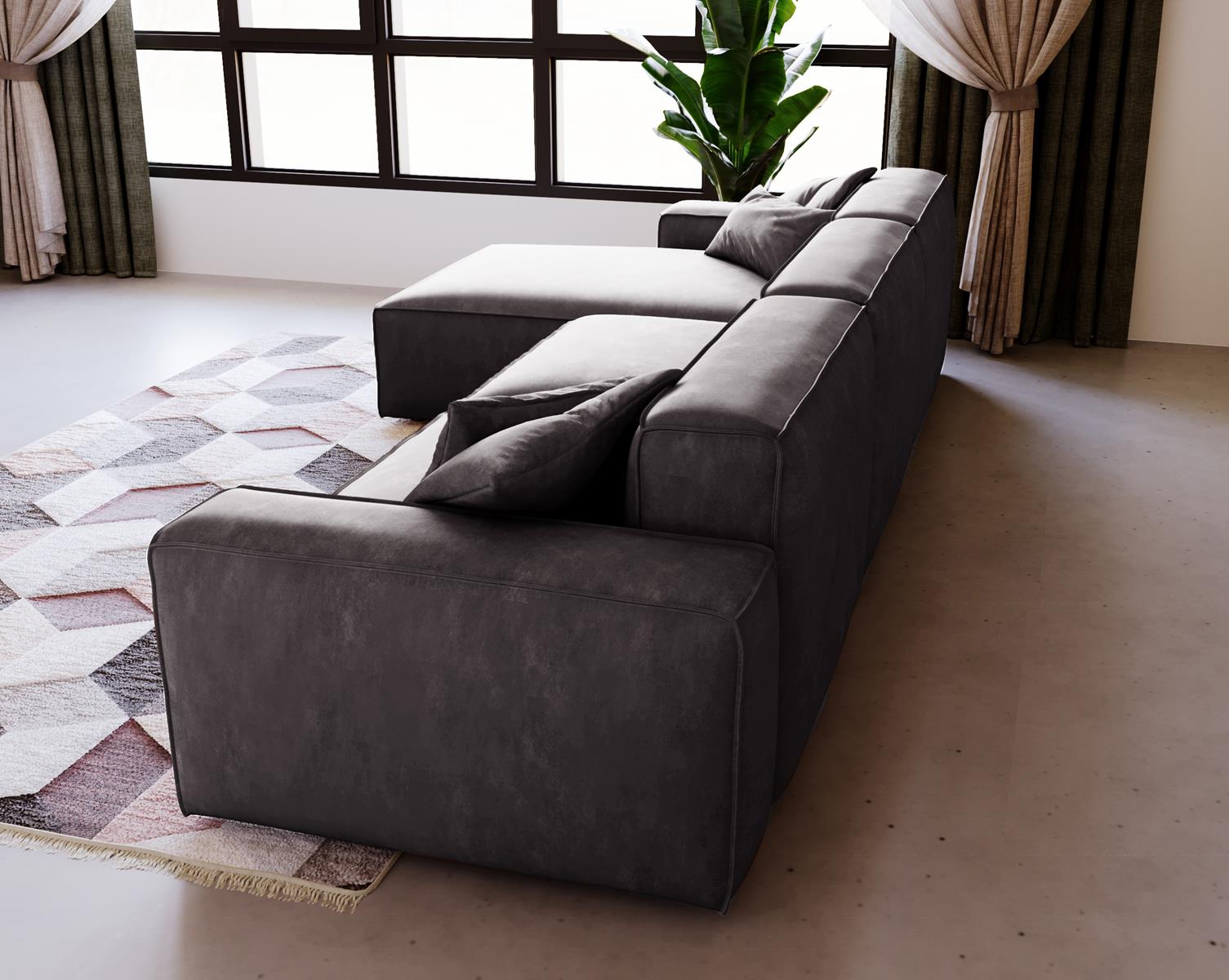 Grafitowy narożnik designerski welur do dużego salonu LOZORNO