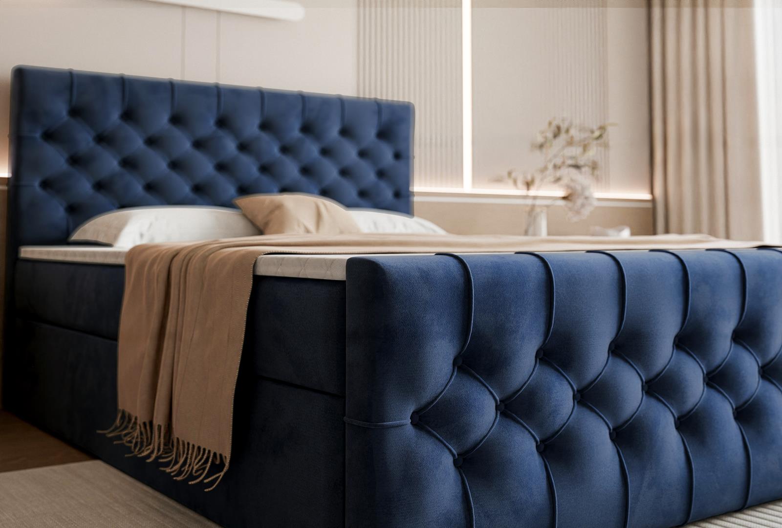 Granatowe łóżko do sypialni kontynentalne MIAMI