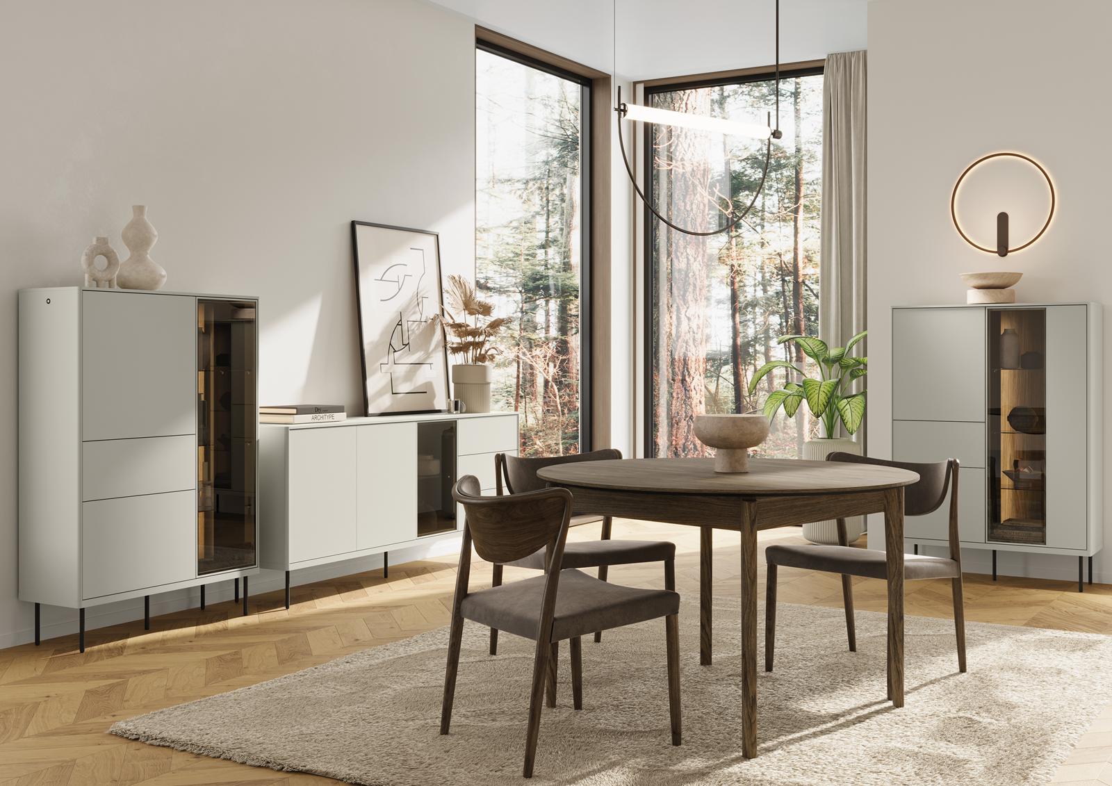 Przeszklone fronty wykonane ze szkła hartowanego pozwalają na efektowne wyeksponowanie porcelany, kryształów, kolekcjonerskich ozdób czy rodzinnych pamiątek. Dzięki oświetleniu LED wszystkie dekoracje prezentują się jeszcze bardziej okazale, przyciągając wzrok i tworząc wyjątkową atmosferę w pomieszczeniu - szczególnie wieczorem.