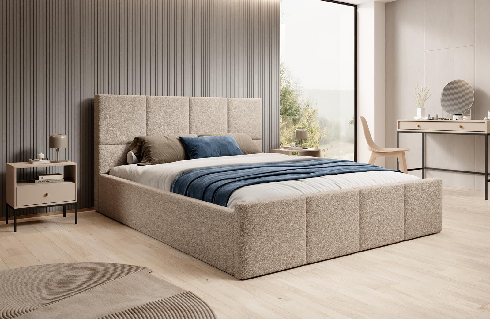 Klasyczne beżowe łóżko tapicerowane COZY 140x200