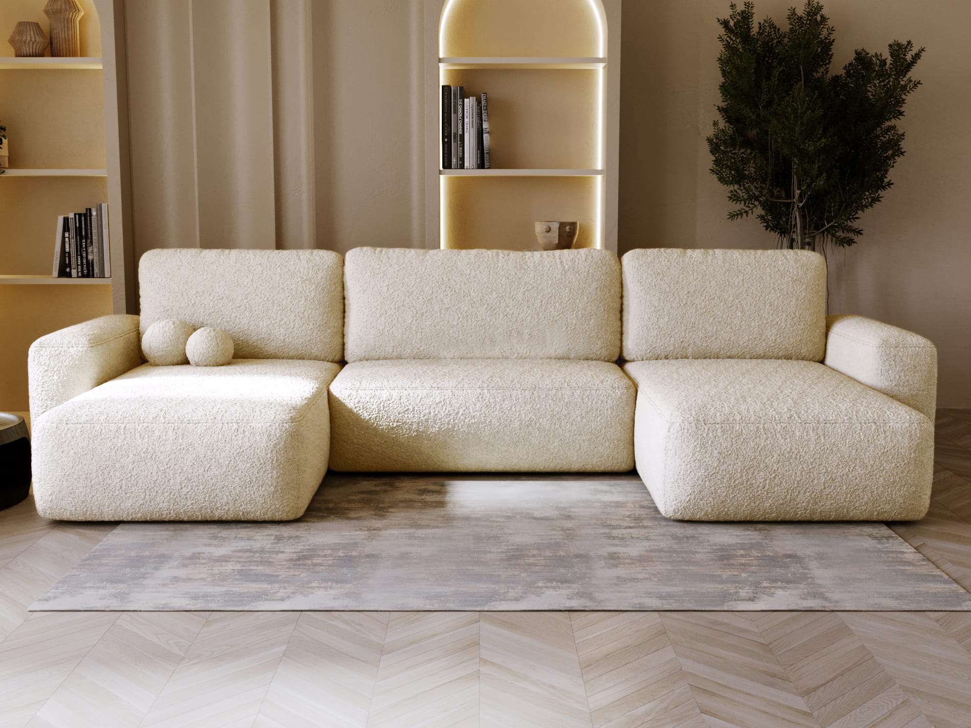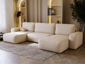 Kremowy narożnik w tkaninie typu teddy to idealne rozwiązanie dla osób ceniących elegancję, przytulność i funkcjonalność w jednym. Jego miękka, puszysta struktura sprawia, że każdy odpoczynek staje się prawdziwą przyjemnością. Jasny, kremowy odcień pięknie rozświetla wnętrze, dodając mu ciepła i harmonii - doskonale pasuje zarówno do nowoczesnych, jak i klasycznych aranżacji salonu.