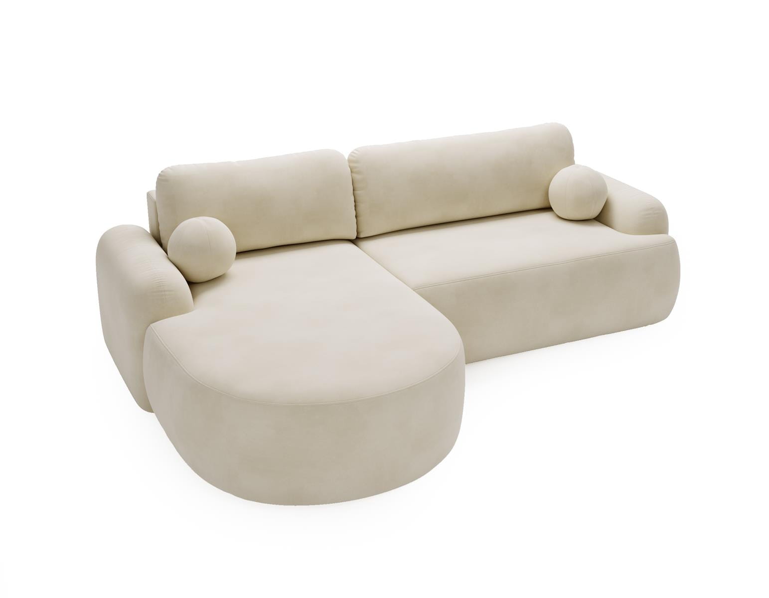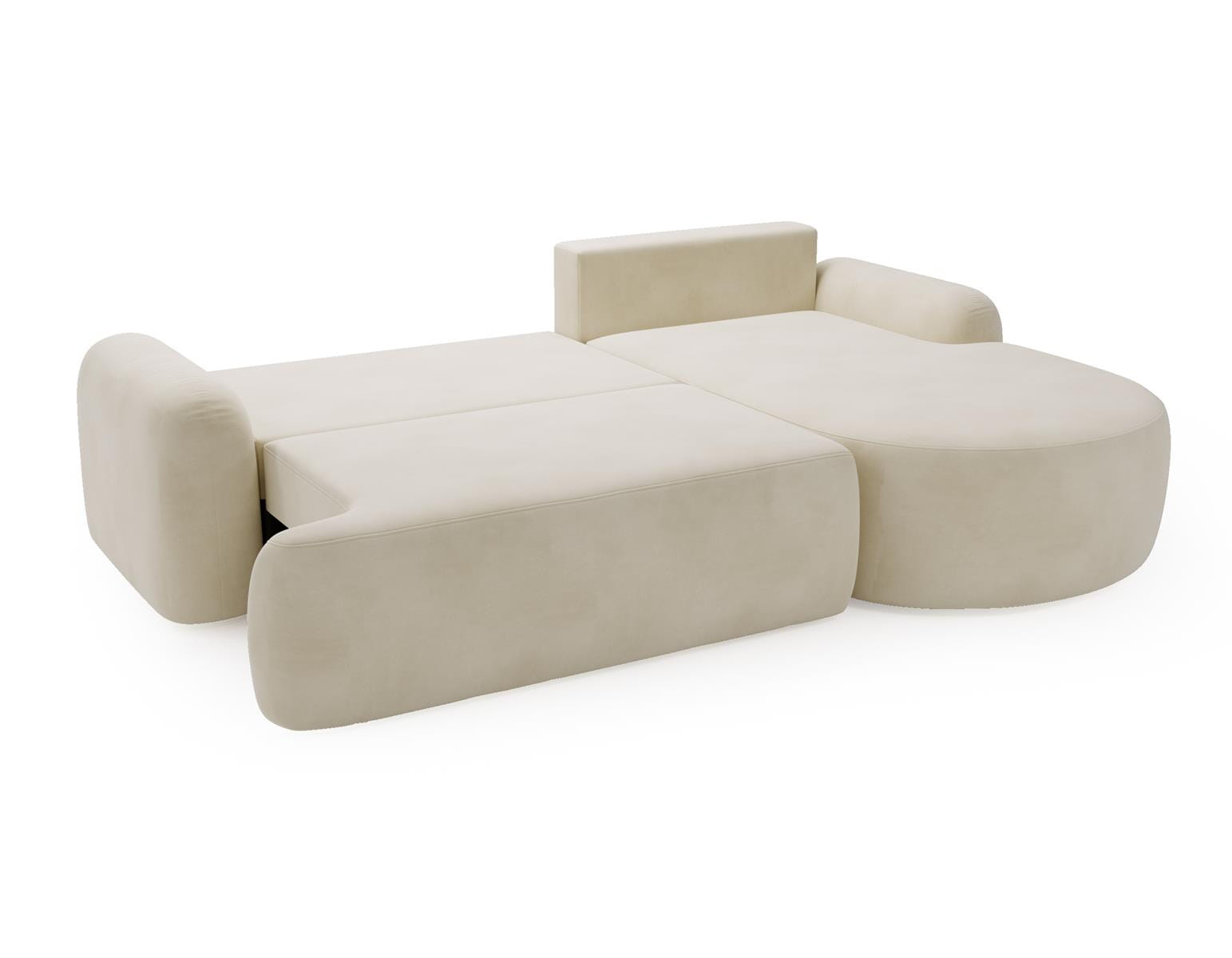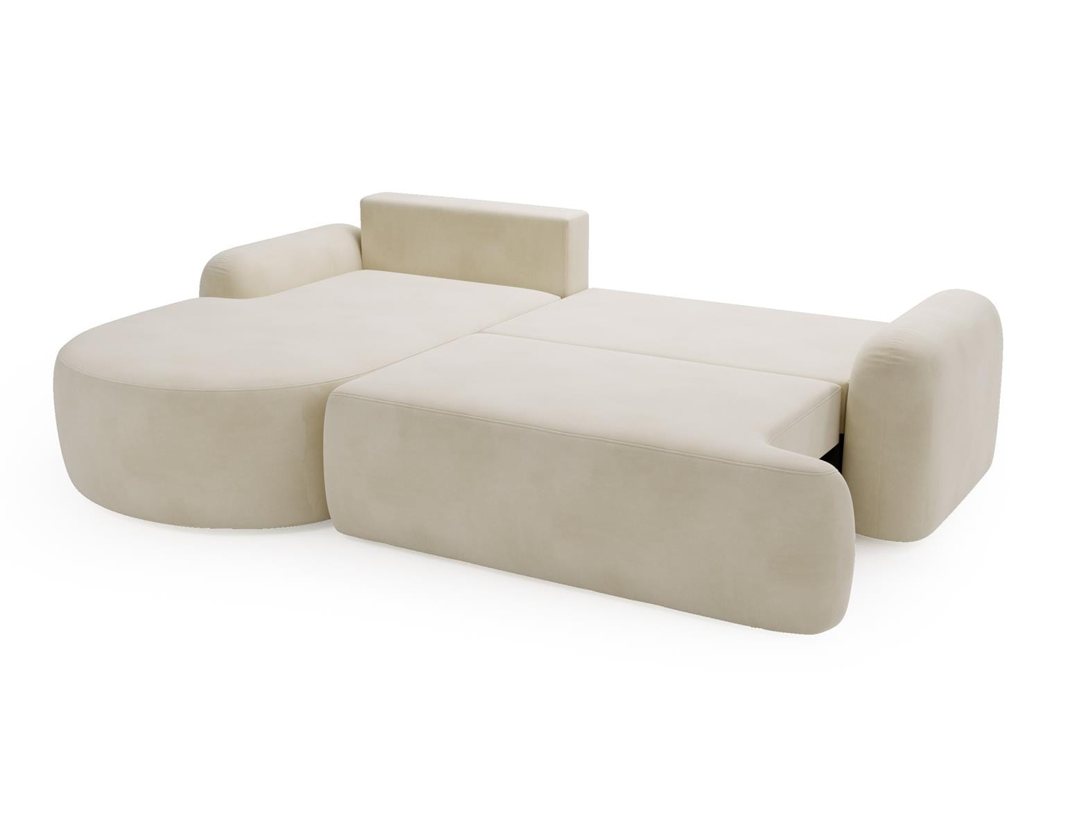 Kremowy narożnik z funkcją spania obłe kształty OLIO