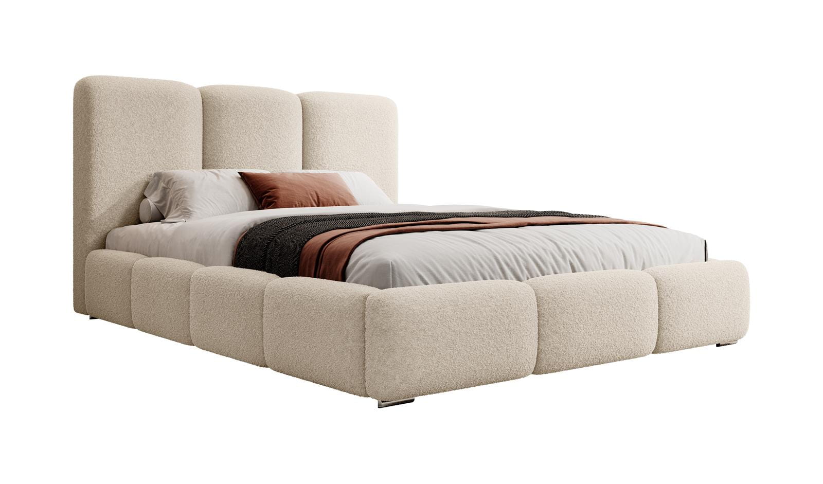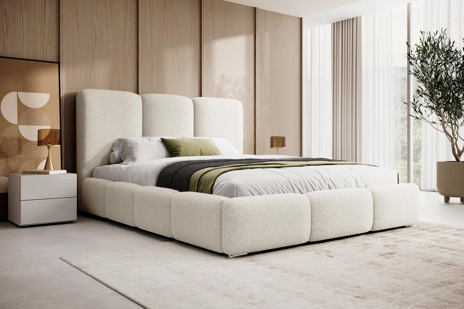 Łóżko do sypialni tapicerowane tkaniną baranek MERIDA