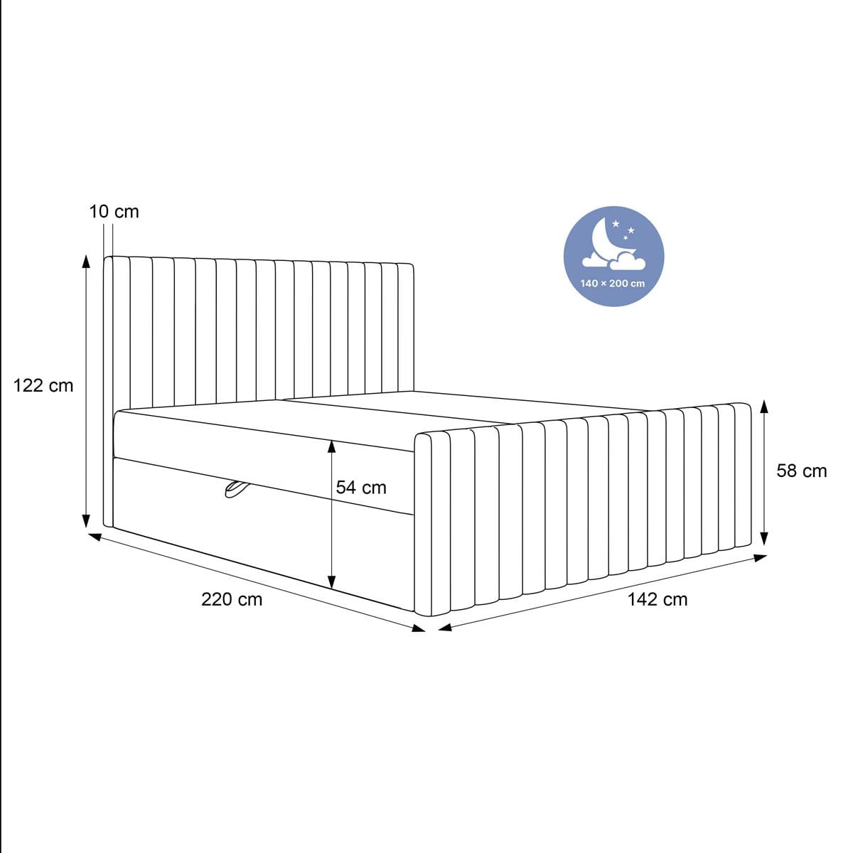 Ten model to więcej niż tylko wygląd – to również wygodne łóżko do spania z pojemnikiem na pościel, wyposażone w dwa praktyczne schowki otwierane z obu stron, idealne do przechowywania koców, kołder czy poduszek.