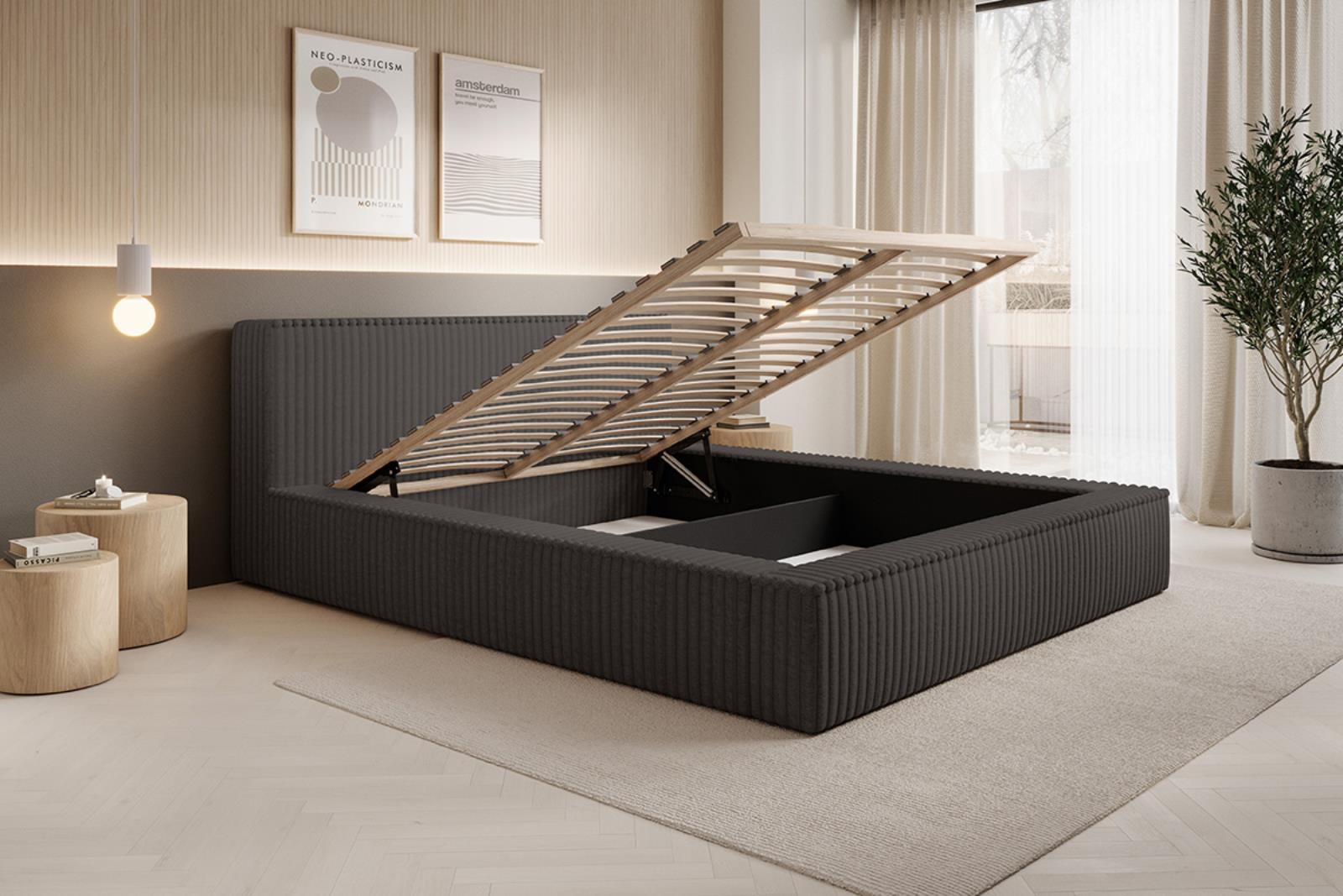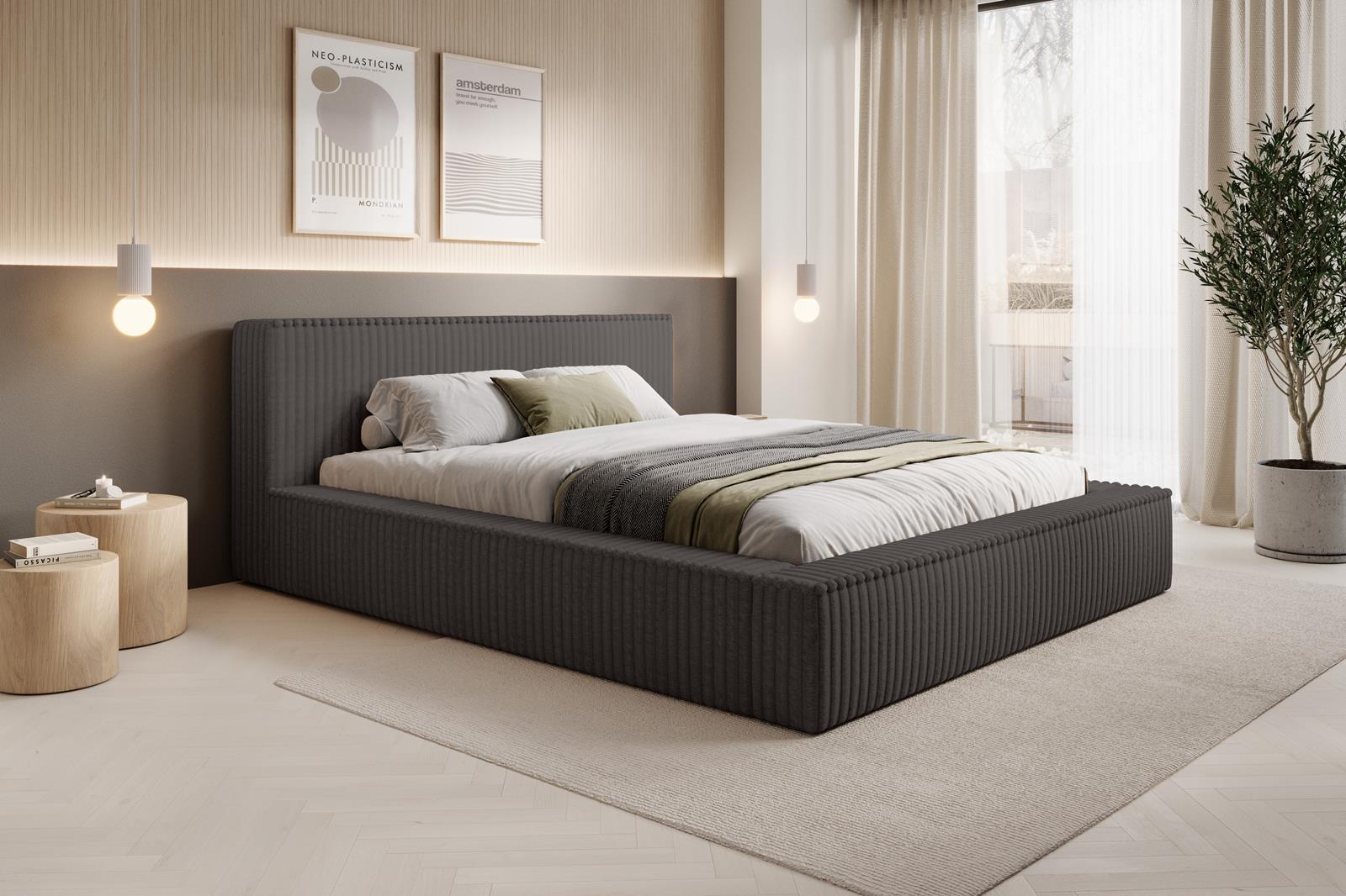 Łóżko sztruksowe grafit do sypialni MELO