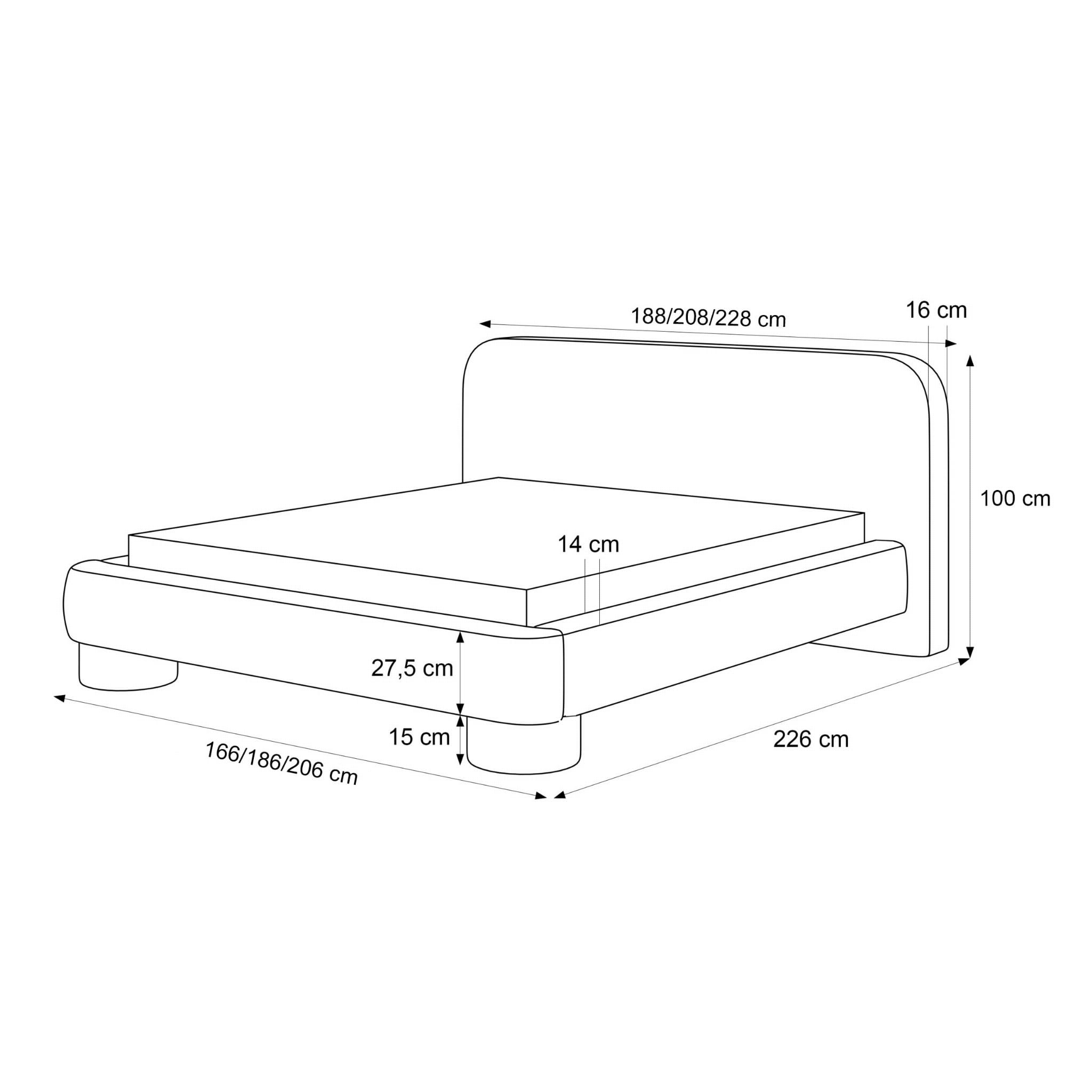 Łóżko zostało wyposażone w wysoki, miękko wyściełany zagłówek, który zapewnia wygodne podparcie pleców podczas czytania, oglądania telewizji czy wieczornego relaksu. Stabilna konstrukcja oraz modne, zaokrąglone nóżki podkreślają nowoczesny charakter mebla i gwarantują komfort użytkowania.