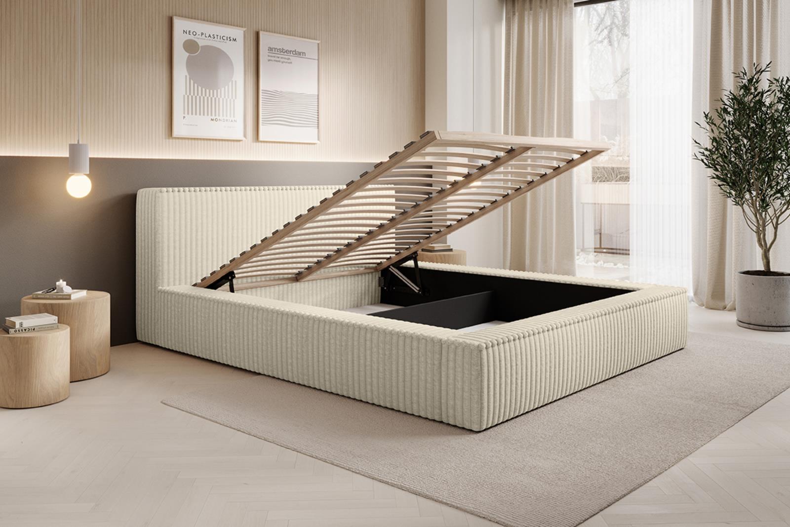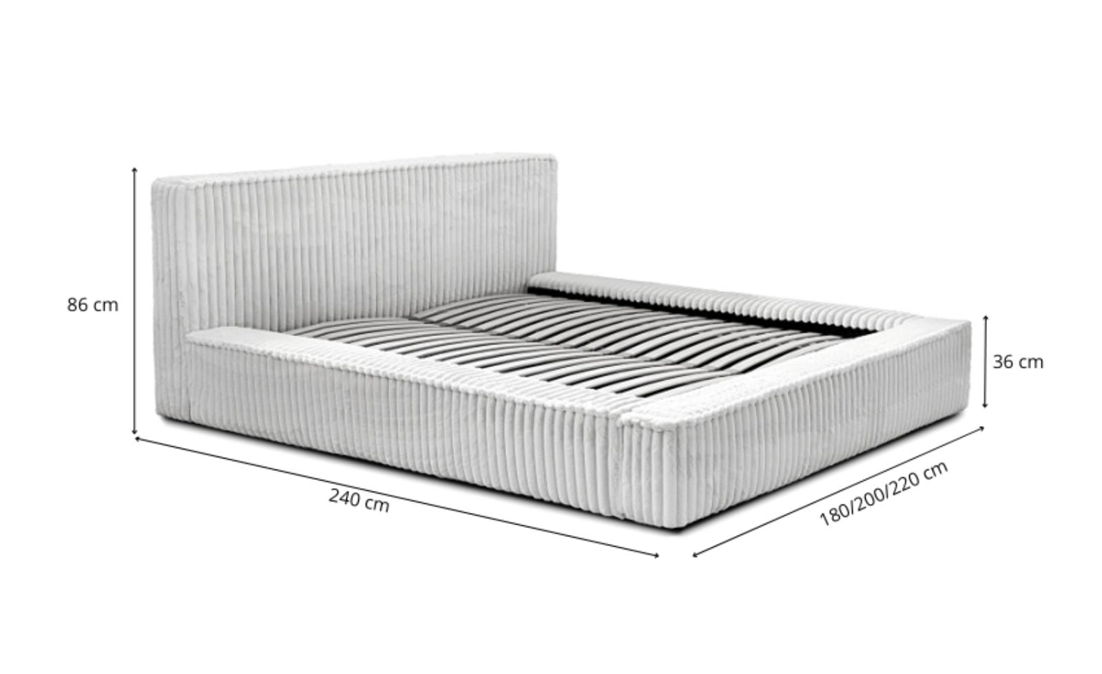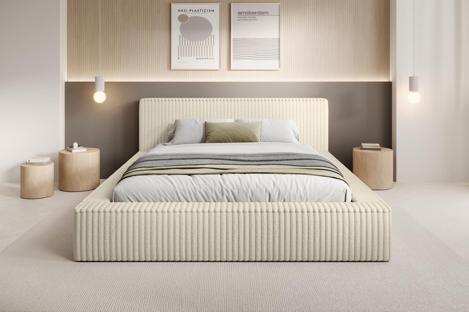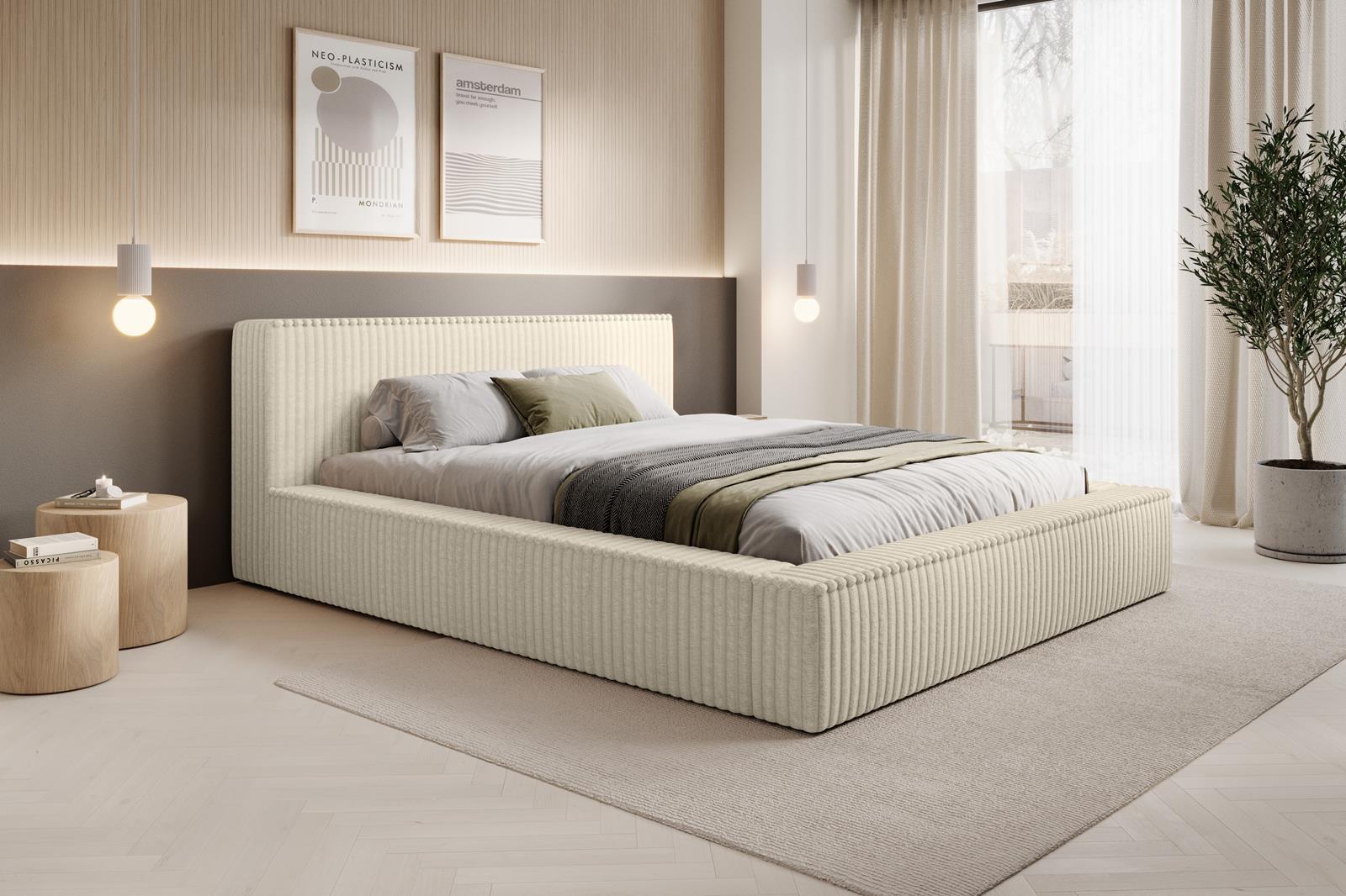 Łóżko z grubego miękkiego sztruksu MELO KREM